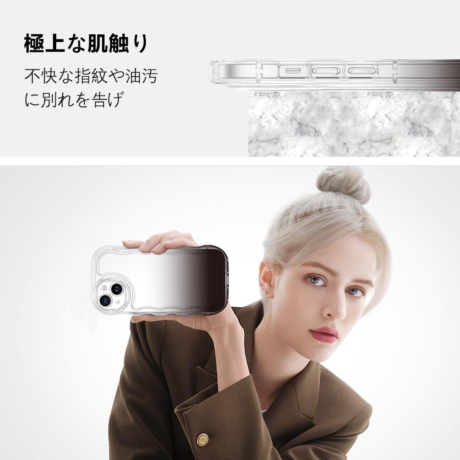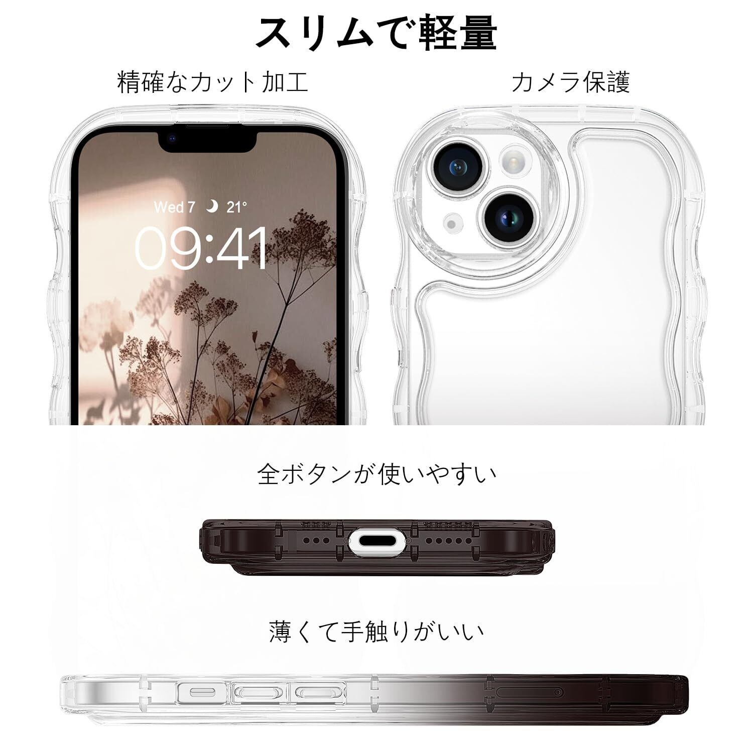 BENTOBEN iPhone 14用ケース クリア グラデーションカラー ブラック TPU 韓国 可愛い ウェーブ ソフト 滑り止め 薄型 軽量 耐衝撃 おしゃれ スマホケース ストラップホール付き アイフォン14 ケース クリア ブラック