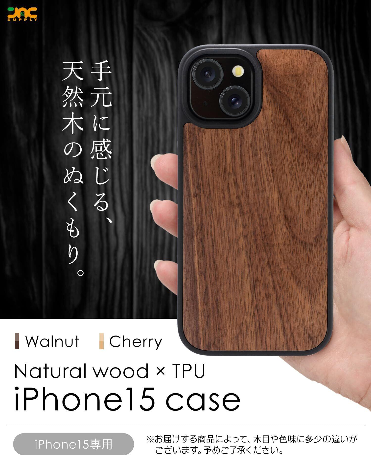 【JAC】 iphone15ケース ウッド 北欧風天然木 お洒落 アイフォン15ケース 高級 耐衝撃 ワイヤレス充電対応 日本企画品 (iphone15 ウォルナット)