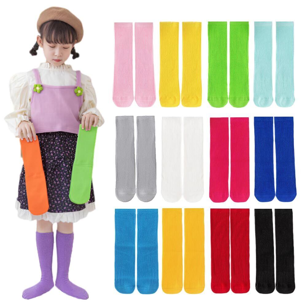 [ZGKULAEAOW] カラフル キッズソックス クルー丈 子供靴下 男の子 女の子 のびのびルーズソックス ネオンカラー リブ編み ハイソックス 運動会 蛍光色 ダンス 3足セット