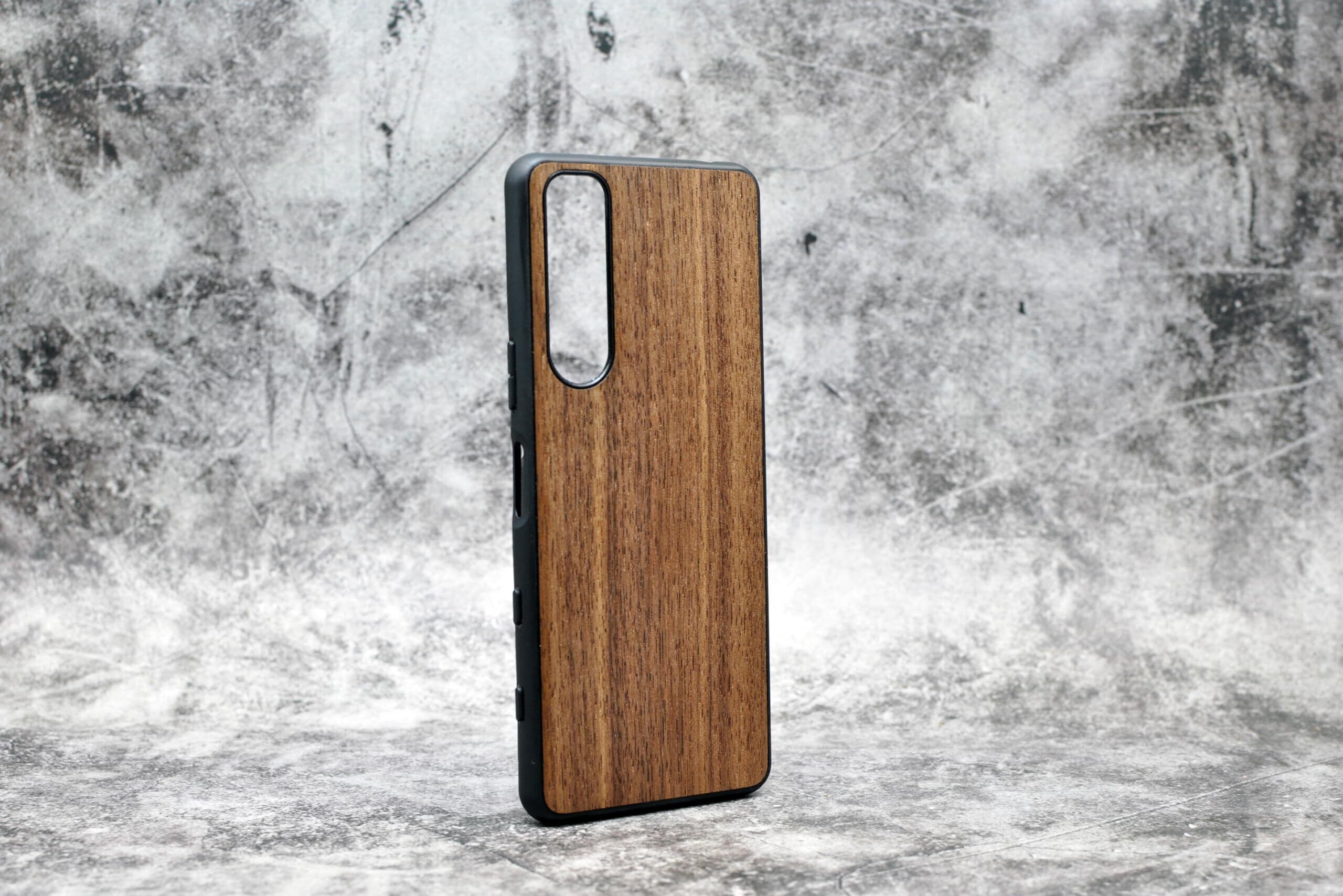 MQman Xperia1vi SO-51E ケース 木製カバー 胡桃の木 原木 素材 エクスペリア天然木 耐衝撃 ソフト クルミ ワイヤレス充電対応 (Xperia 1 VI)