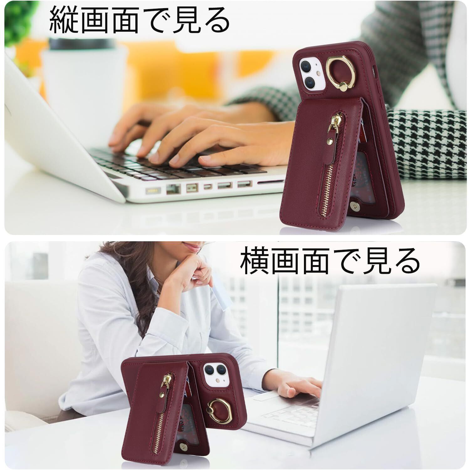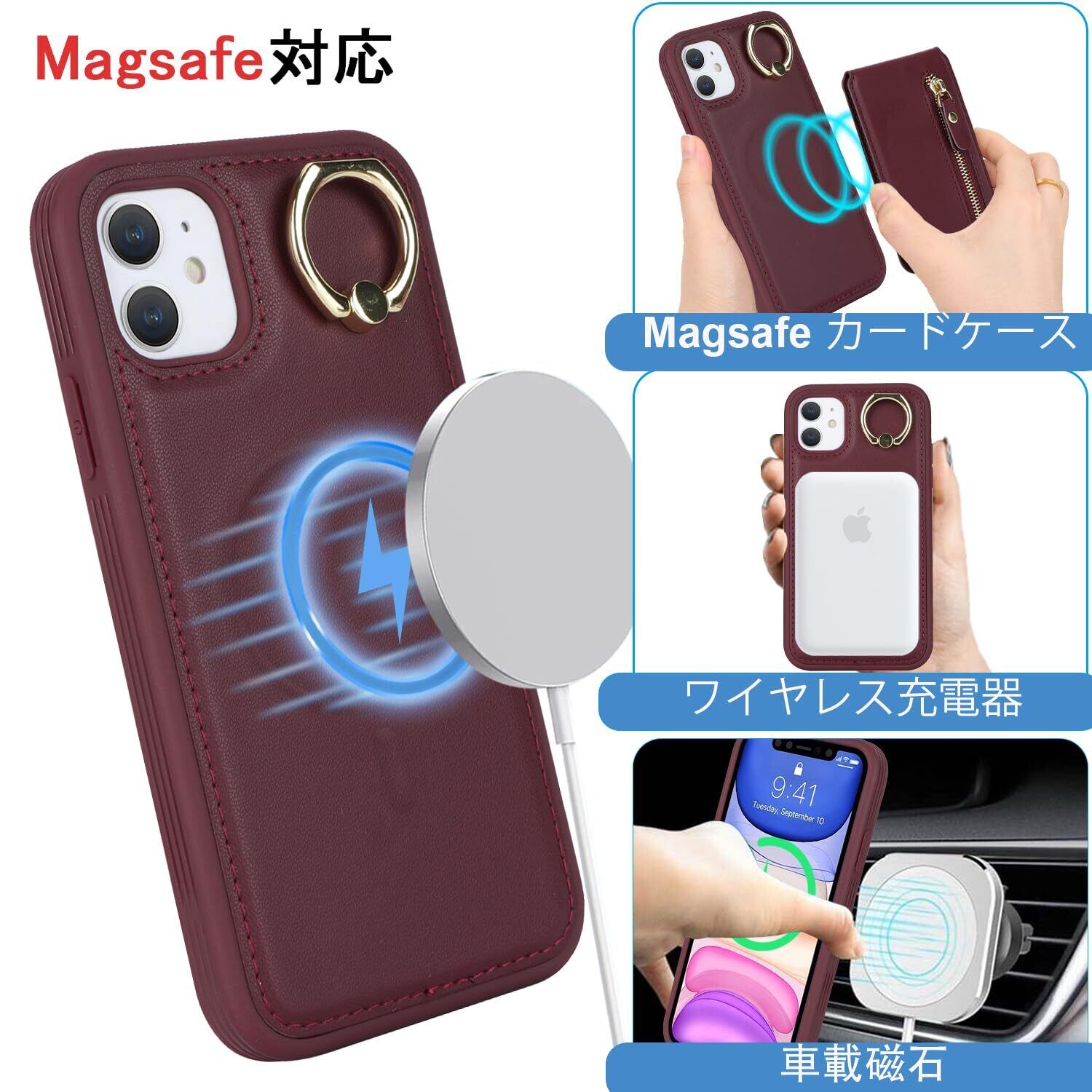 Havaya iPhone11ケース MagSafe 対応 iPhone11 ケース マグセーフ 分離式 リング付き 耐衝撃 カード収納 ファスナー ワイヤレス充電対応(6.1インチ対応)-ワインレッド | yankees