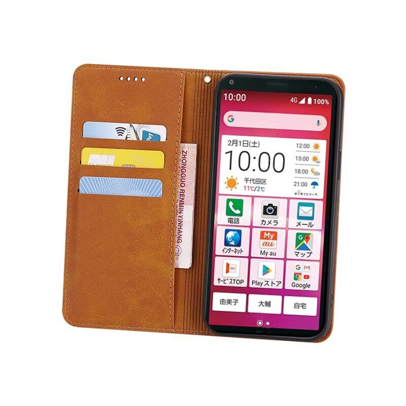 京セラ BASIO4 KYV47 / かんたんスマホ2 A001KC ケース 手帳型 カバー PUレザー カード収納 財布型 耐衝撃 ケース マグネット スタンド機能付き 5色 (ライトブラウン)