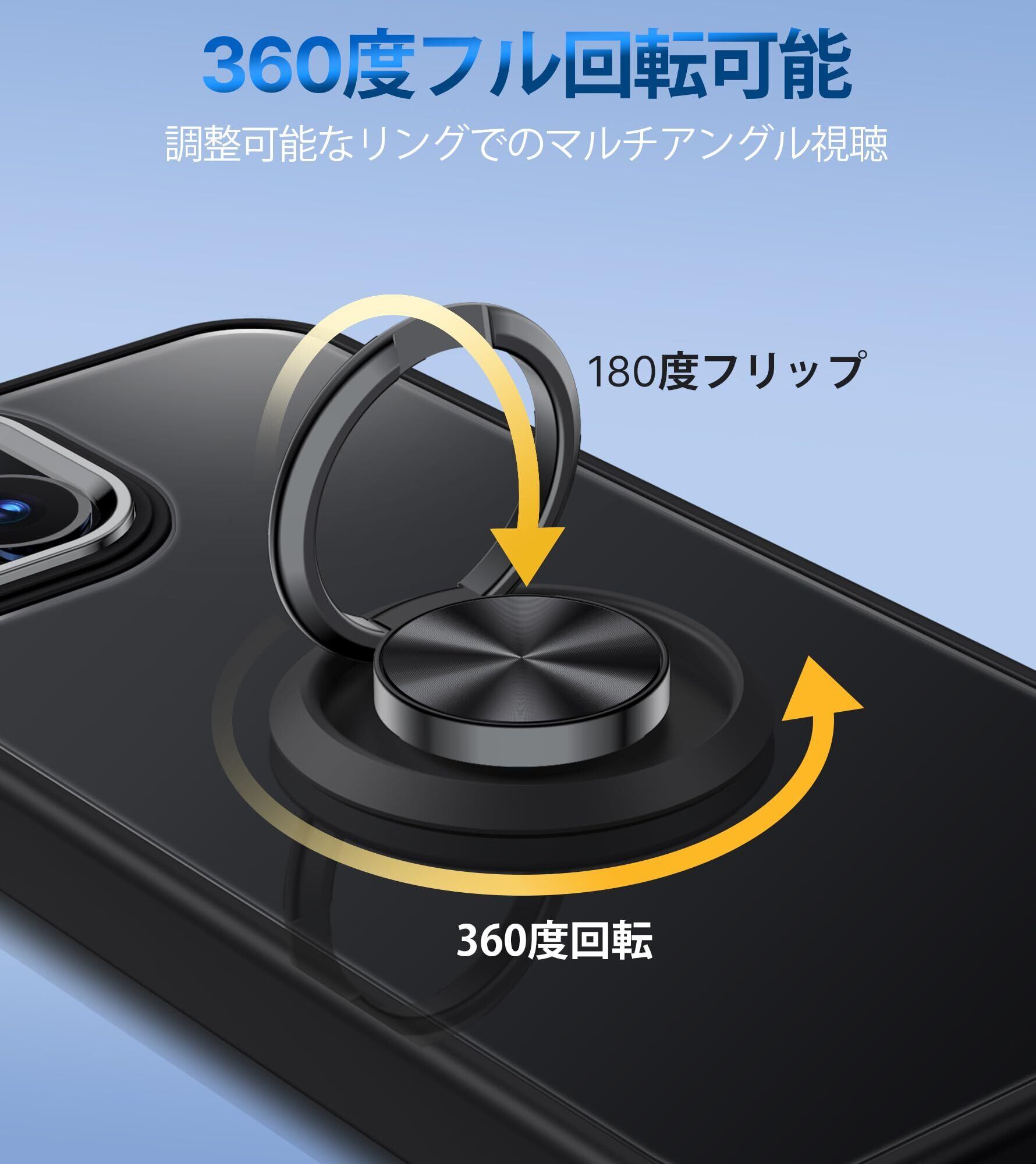 【リング付き&スタンド機能】リングは360度回転可能で、180度の角度調節も可能です。ケースを横置きにするとスタンド機能になり、持たずに動画鑑賞などを楽しむことができます。指をリングに通して一本指で持つことで、片手で携帯電話を操作でき、落下を防止します。