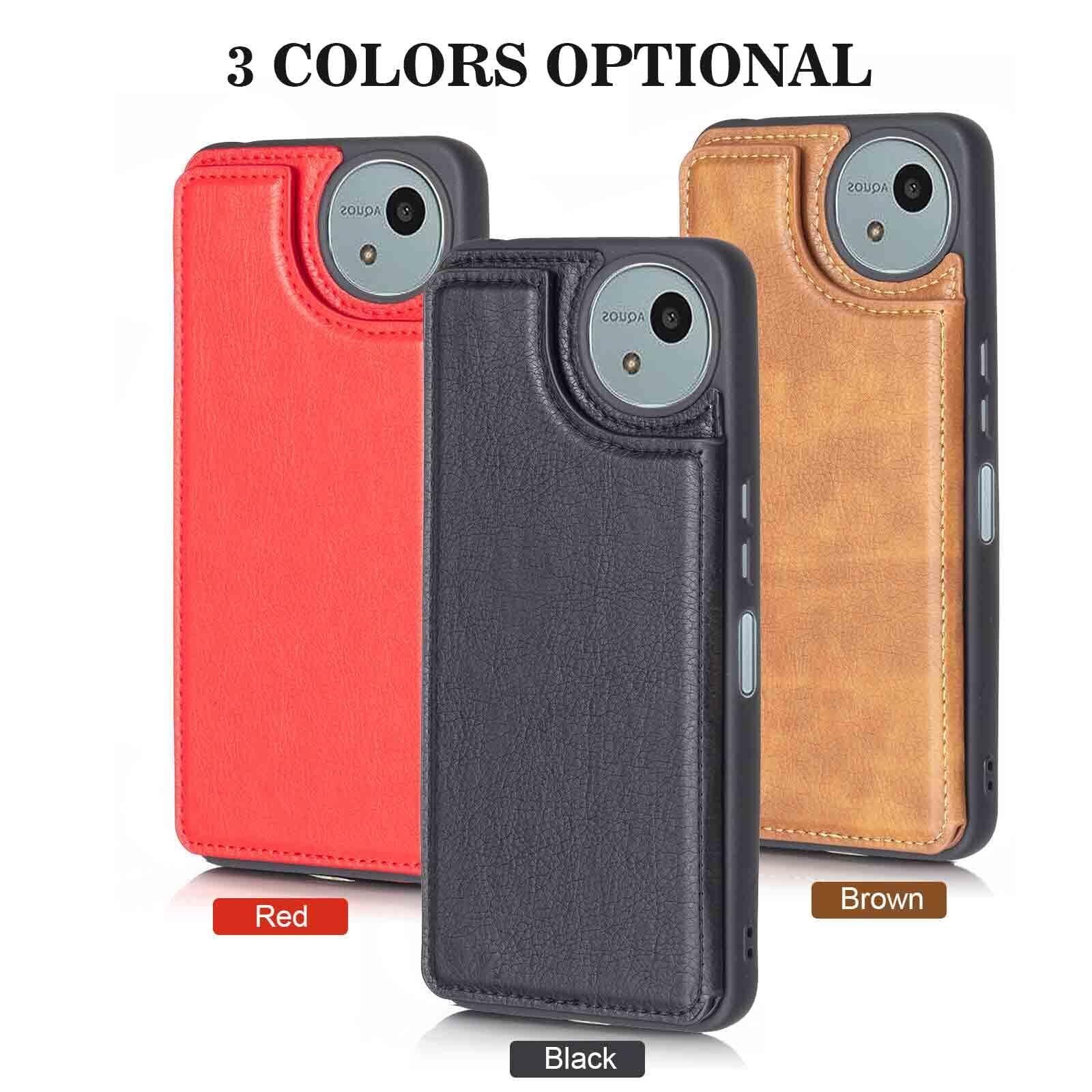 【Geshh】Wish 4/SH-52E 財布型ケース 左右開 薄型軽量 カバー(レトロブラウン)背面ケース スタンド機能 手触りが良い 上質 スキミング防止 手帳型ケース シャープ アクオス ウィッシュ4 sh52e wish4 薄い茶