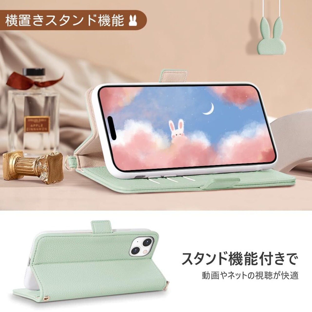 MAGICASE 適応 いphone16E ケース 手帳型 iPhone16e ケース手帳型 かわいい iPhone 16eケース手帳型カード収納 スマホケースアイフォン 16e 2025 あいふぉん16e 手帳カバー アイフォン16e 保護ケース カードポケット可愛い 兎 人気 携帯カバー レディース 女性 上品 肌触り良い(6.1)
