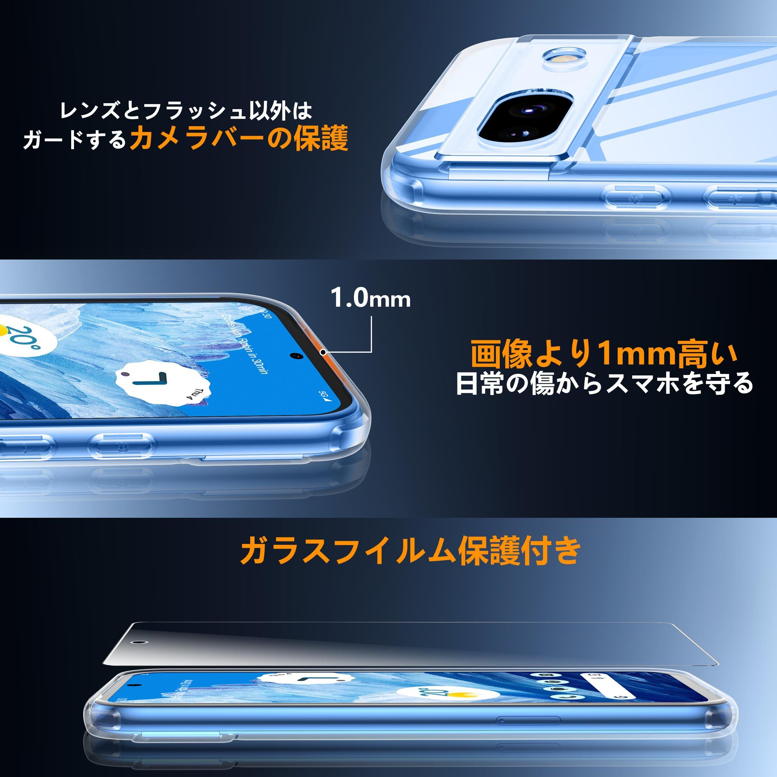 Google Pixel 8a ケース クリア 黄変防止 グーグルピクセル8a用 耐衝撃 ガラスフイルム保護付き 指紋防止 落下防止 耐久性 ストラップホール付 薄型 軽量 ソフトカバー ワイヤレス充電対応 googleピクセル8a 用 XIWXI