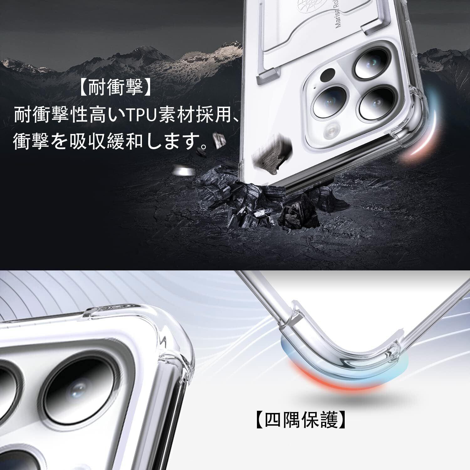 Rockaway iPhone 16 Pro 用 ケース カード収納 背面ポケット リング付き スタンド機能 耐衝撃 透明 TPU スマホケース 6.3インチ アイフォン16プロ 用カバー - クリア | yankees