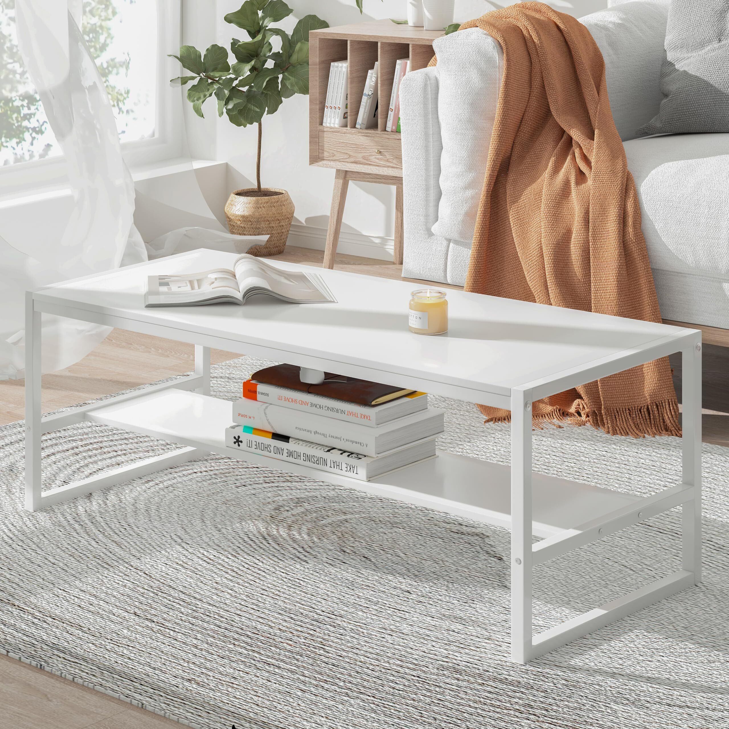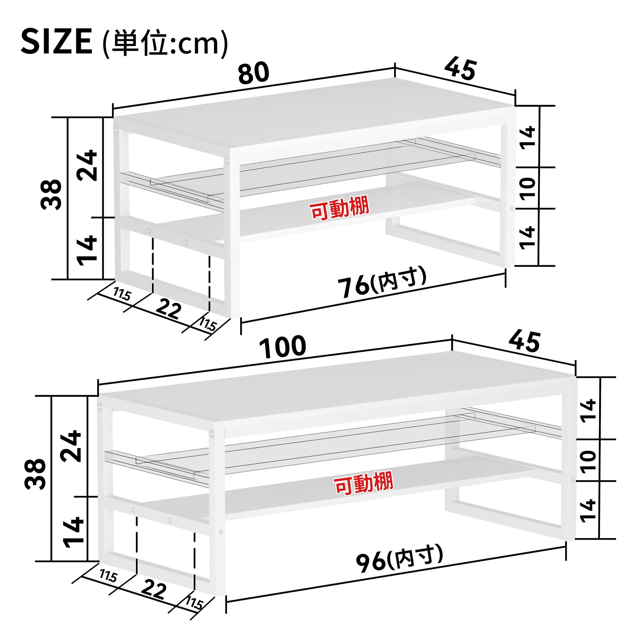 LunarLight ローテーブル 幅100奥行45高さ38cm センターテーブル リビングテーブル コーヒーテーブル 机 座卓 コンパクトデザイン 収納棚板の高さ可動式 床傷防止用のアジャストフェルト付き 強度安定 錆び防止 耐摩耗性 防水性 耐熱性機能 (ホワイト, 幅100cm)