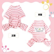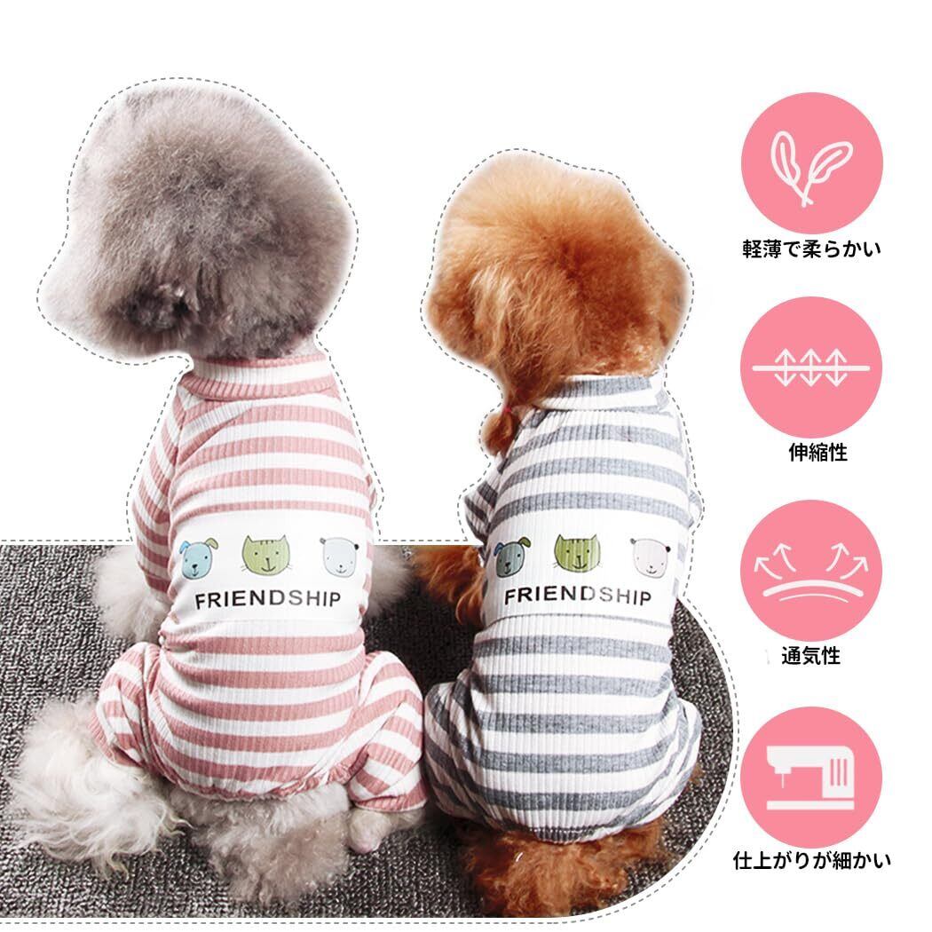 AmzBarley 犬 ロンパース パジャマ 春 秋 犬服 洋服 ストライプ 小型犬 中型犬 犬の服 ロンパース 四つの足 カバーオール 超柔らかい 通気性 可愛い ドッグウエア 洋服 シャツ ペット服 猫服 寝間着 部屋着 体掻き予防 抜け毛防止 虫除け お出かけ お散歩 ピンク