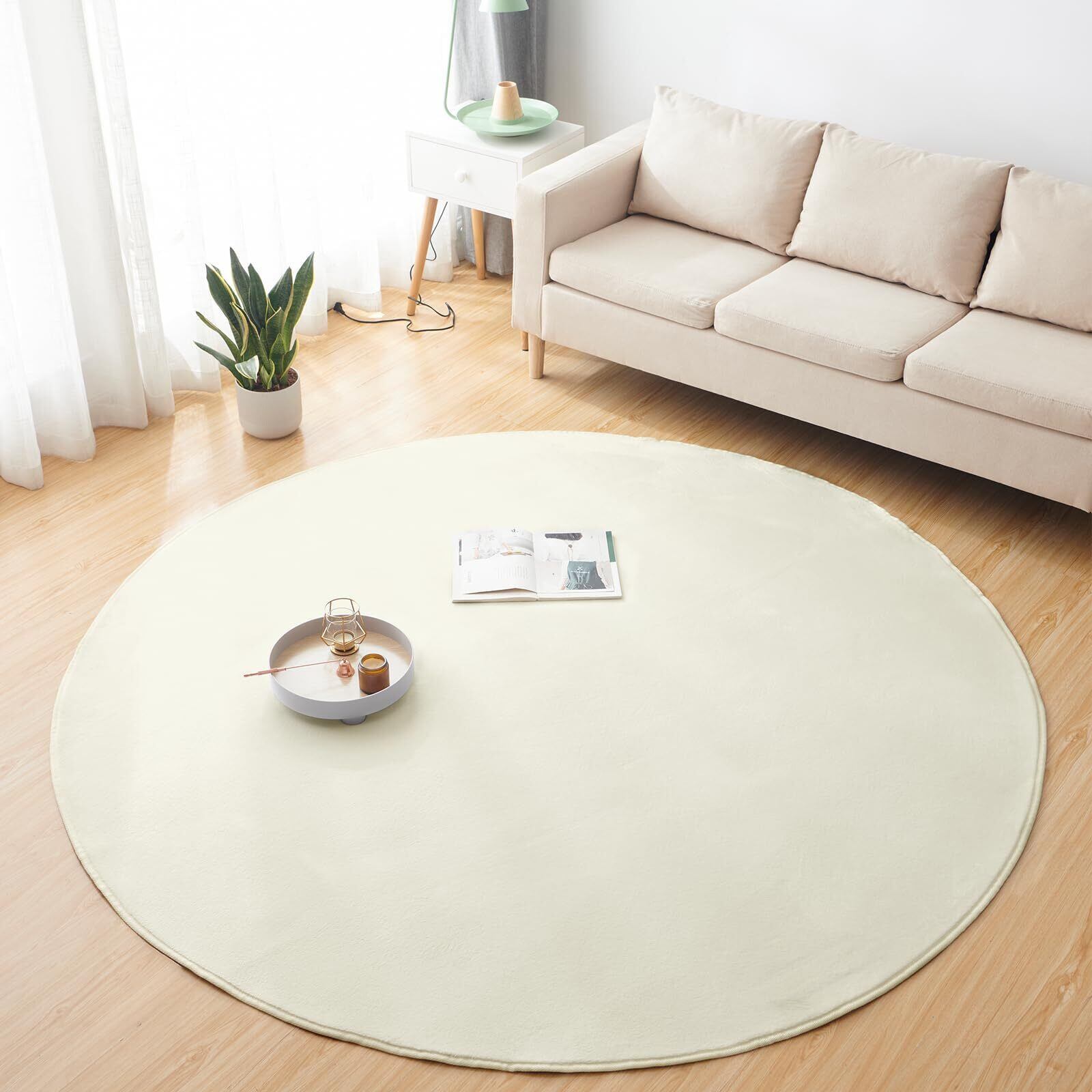 Keusnix ラグ カーペット ラグマット 円形 直径120cm 滑り止め付 洗える 防ダニ 抗菌 防臭 オールシーズン快適に使用 絨毯 床暖房 ホットカーペット対応 ふわふわ肌触り フランネルラグ 無地・アイボリー | yankees