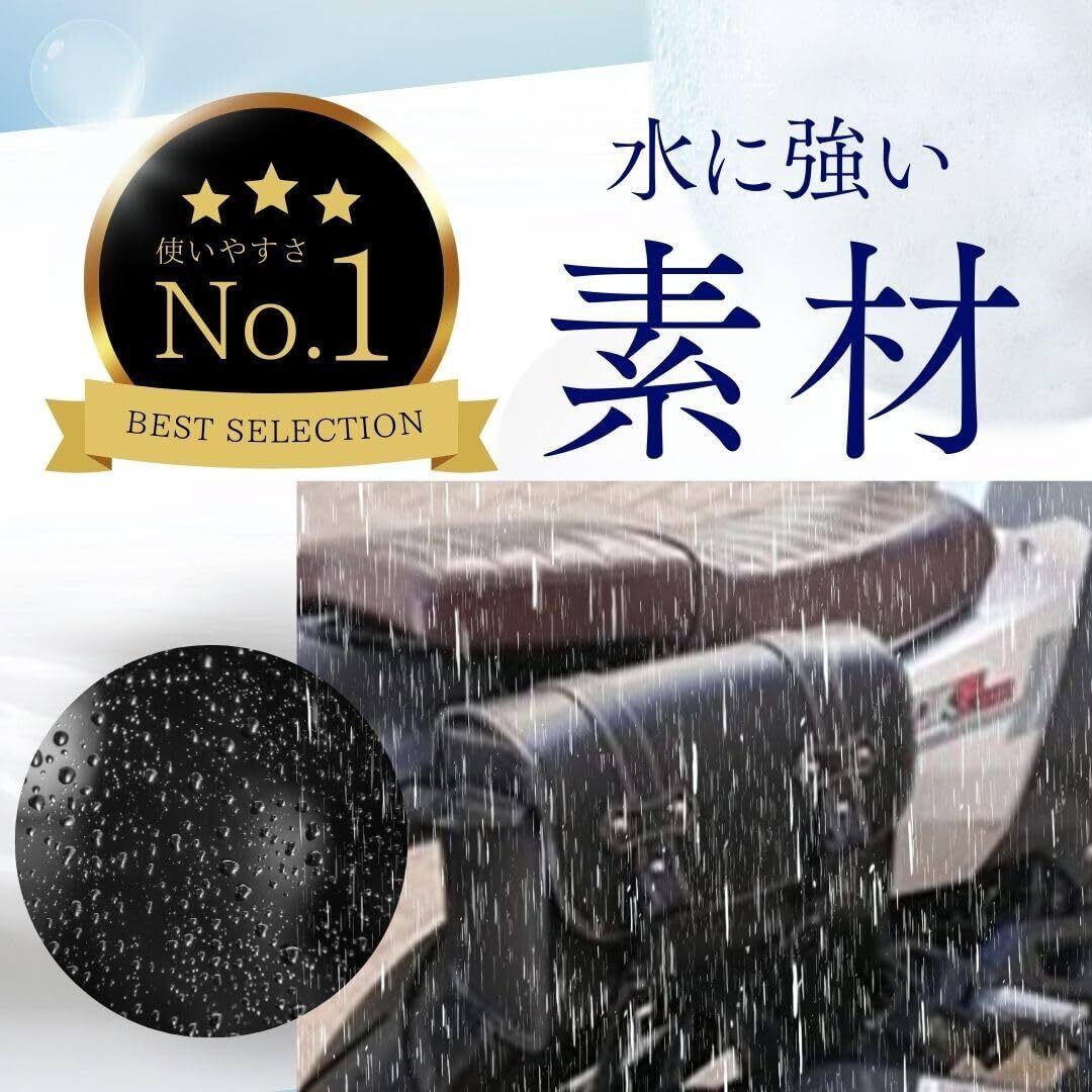 ・付属のベルトをバーやパイプに取り付けるだけなので簡単に装着できる。多くの収納ができるので、工具などを持ち運ぶことも可能。どんな車種でも合わせやすい。水が染み込みにくくお手入れがしやすい。