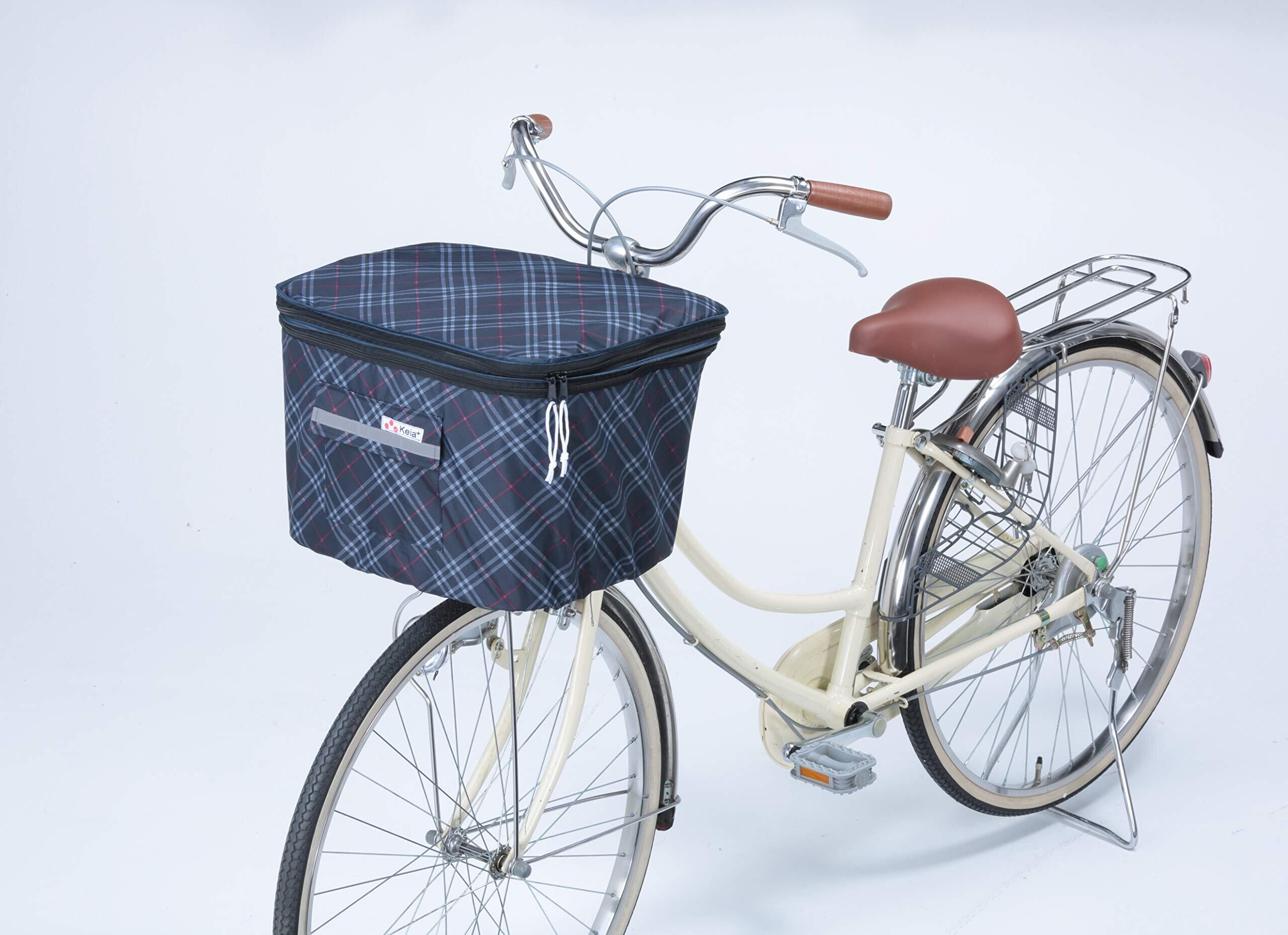 川住製作所 2段式前カゴカバー ネイビーチェック 両開き式 KW-256FR | yankees