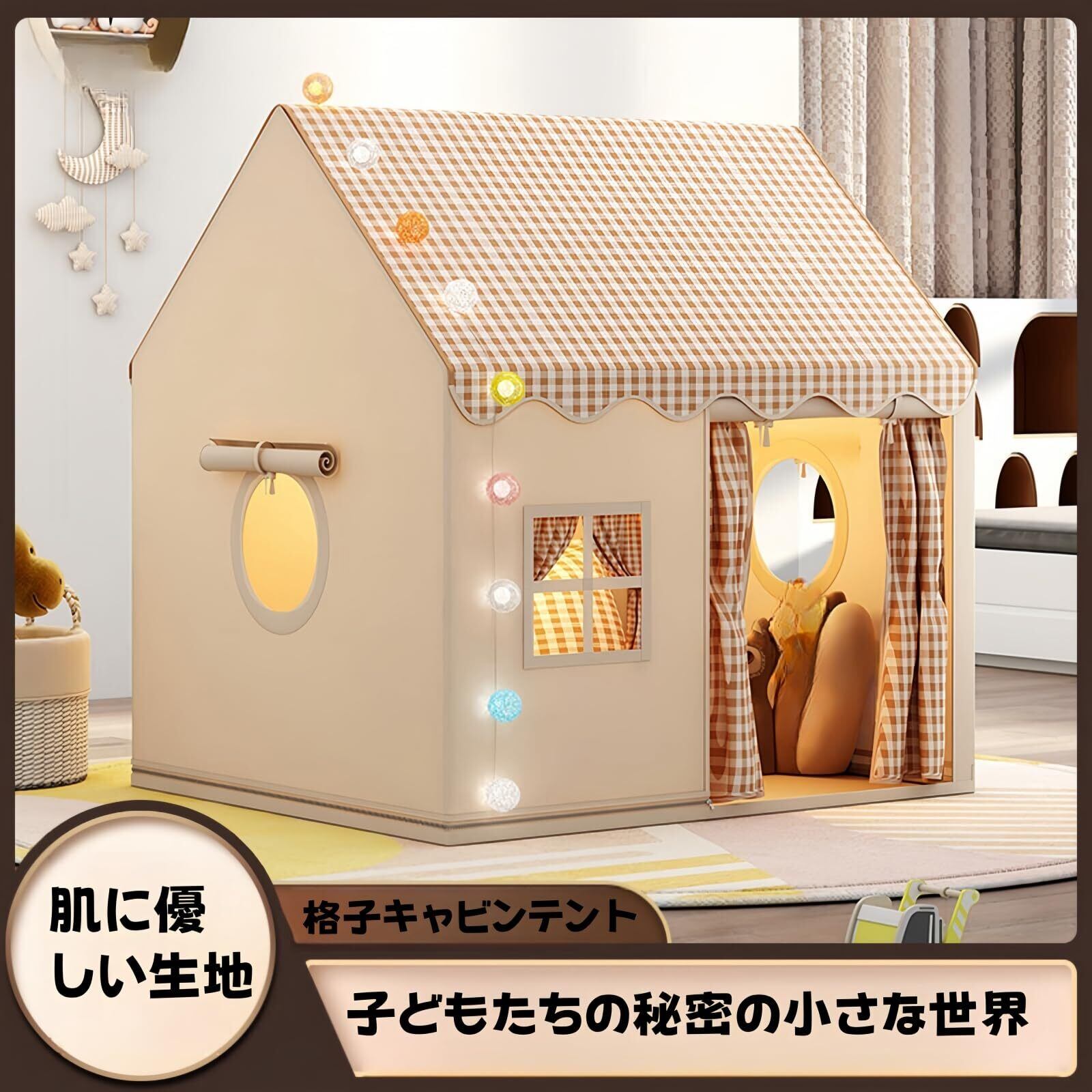 【通気性が良くてムレにくい】通気性の良い素材でお子様も快適に過ごせます,いつでも涼しく、優れた通気性と空気の対流で、お子様は蒸れずに楽しく遊べます,テントは高品質の生地で作られており、安心感があります,頑丈なテントポールは耐久性と安全性を保証します。毎日のゲームでもアクティビティでも、お子様の遊びに耐え、長期間の安全な使用を保証します