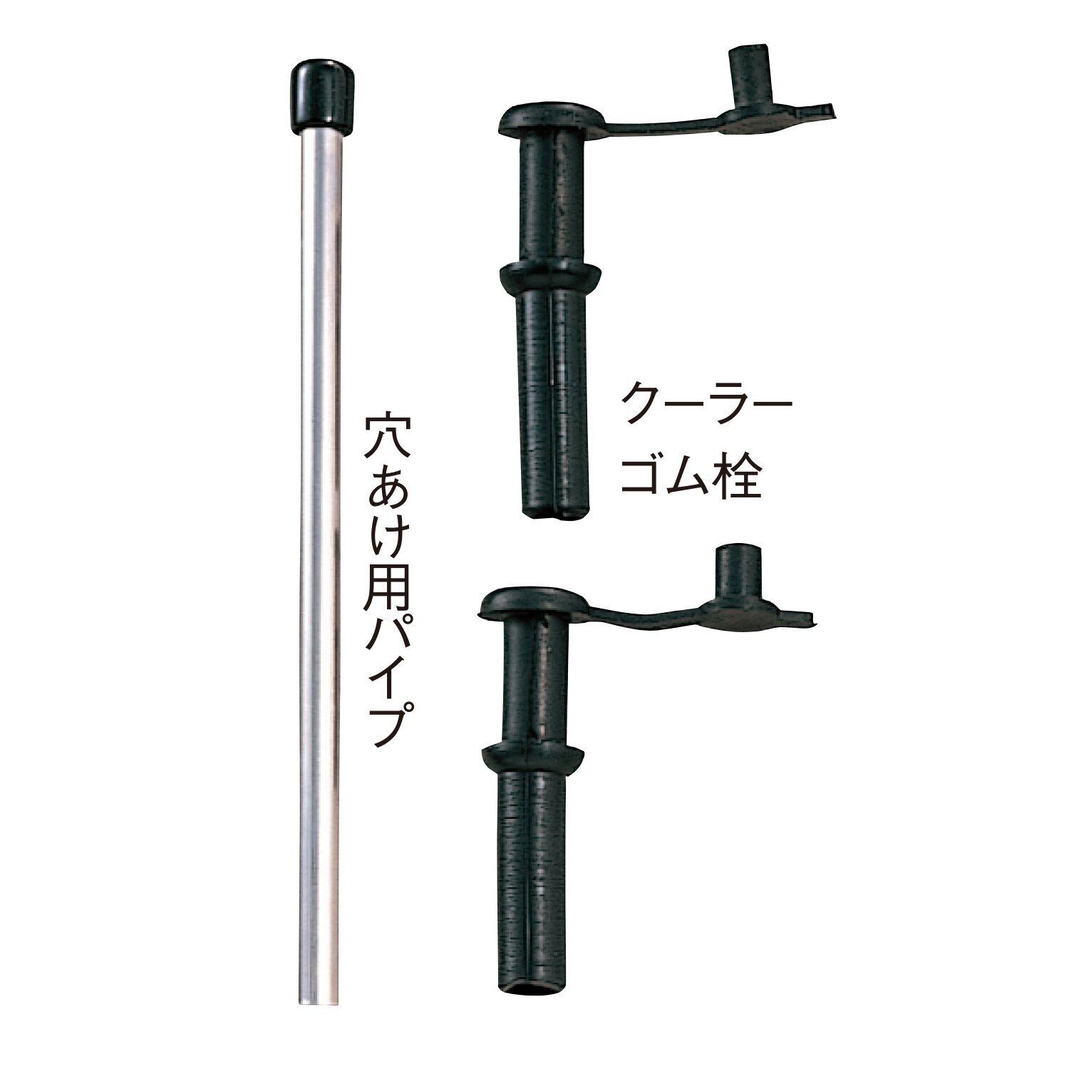 熱溶断で穴あけ簡単!お手持ちのクーラーがエビやアジ活かしクーラーに、、穴あけ用パイプ1ヶ、ゴム栓2ヶ在中。