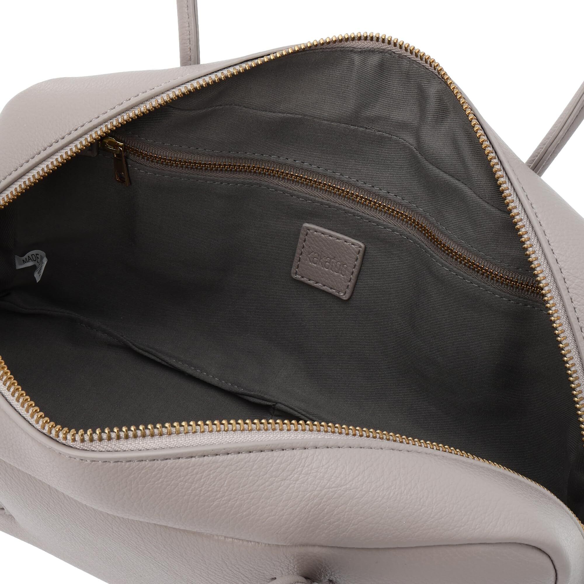 横長のシルエットと細めのハンドルが女性らしい雰囲気のボストンバッグ。