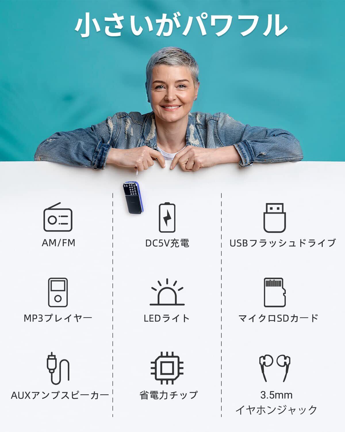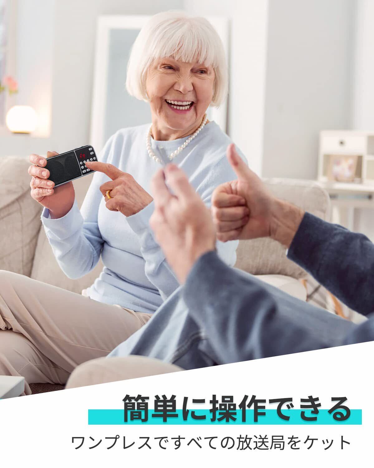 ポケットラジオ:この充電式ポータブルラジオ(サイズ:126*59*25mm;重量:126g)は、iPhone 12miniのサイズに近いため、ポケットに合うほど小さいです。隠されたアンテナとして動作するストラップも装備されており、持ち歩くのは非常に簡単です。朝のエクササイズ、散歩、公園での休憩などは素晴らしいラジオ放送と一緒にお楽しみできます。