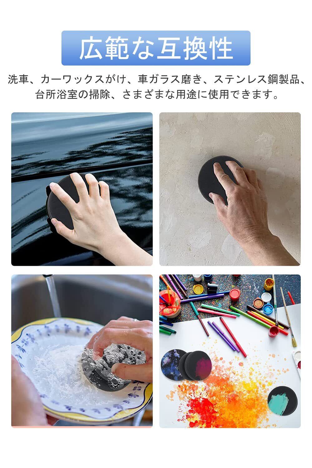 【材質】丸いスポンジ、強力な吸水性と耐久性。細目ポリッシャースポンジは洗車やワックスがけ、コンパウンド、研磨、ワックスがけなどに使えます。