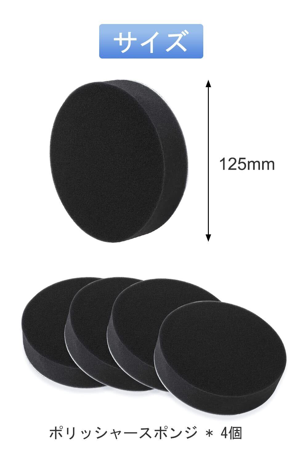 YFFSFDC ポリッシャー バフ スポンジバフ フラット タイプ 車磨き用 スポンジバフ 125mm 洗車 スポンジ 極細柔らかい 電動ポリッシャー用 洗車 ワックスがけ テープ式 ブラック 4個セット | yankees