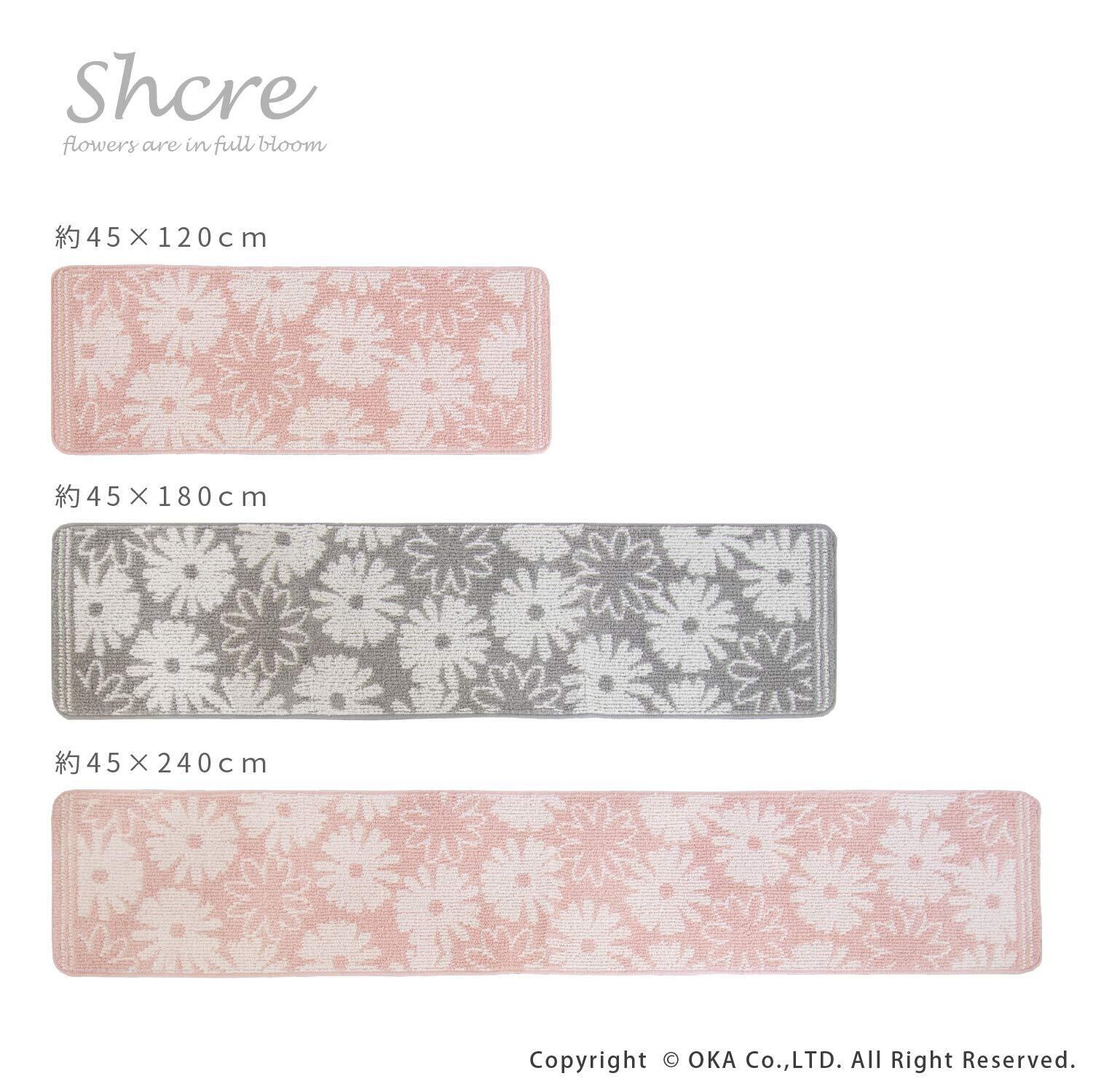 オカ(OKA) シュクレ キッチンマット 約45cm×180cm グレー(すべり止め 洗える)