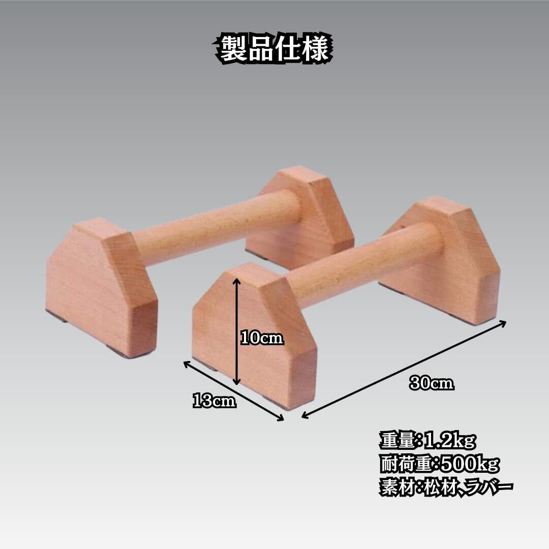 Charmoon 木製 プッシュアップバー 30cm 2個 耐荷重 500kg 腕立て伏せ 逆立ち 筋トレ 大型 太め 平行 安定 滑らない 頑丈