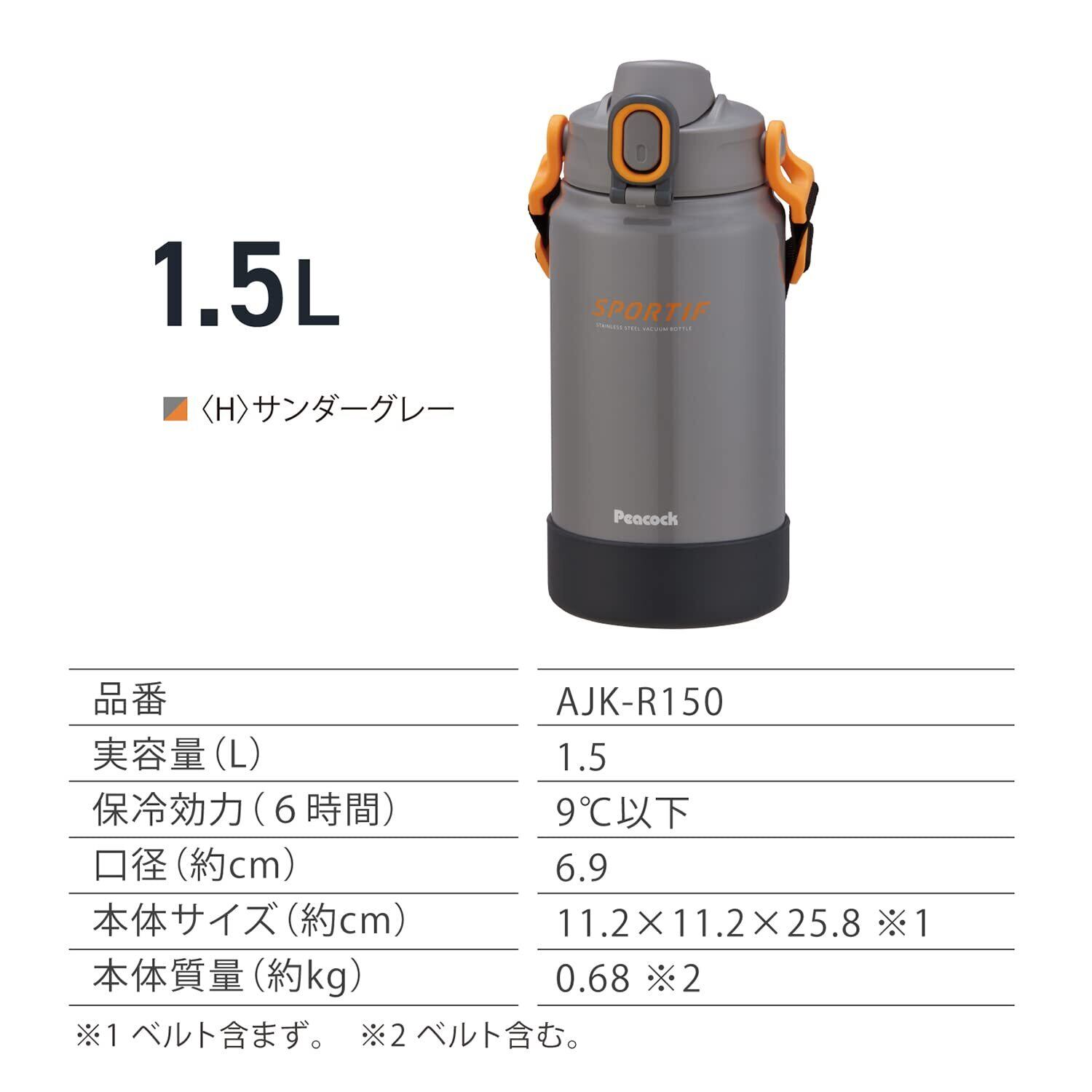 ピーコック魔法瓶工業(The-peacock) 水筒 1.5リットル 保冷 大容量 アイスコンテナ アイスジャグ スポーツドリンク対応 ワンタッチ マグボトル 1.5L サンダーグレー AJK-R150 H