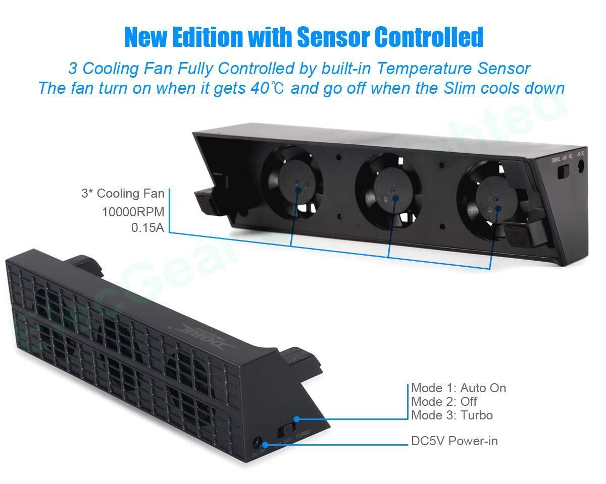 ElecGear PS4 Slim用自動冷却ファン、外付けターボUSBクーラーファン、PlayStation 4 Slim CUH-2xxx用の自動温度センサー制御放熱