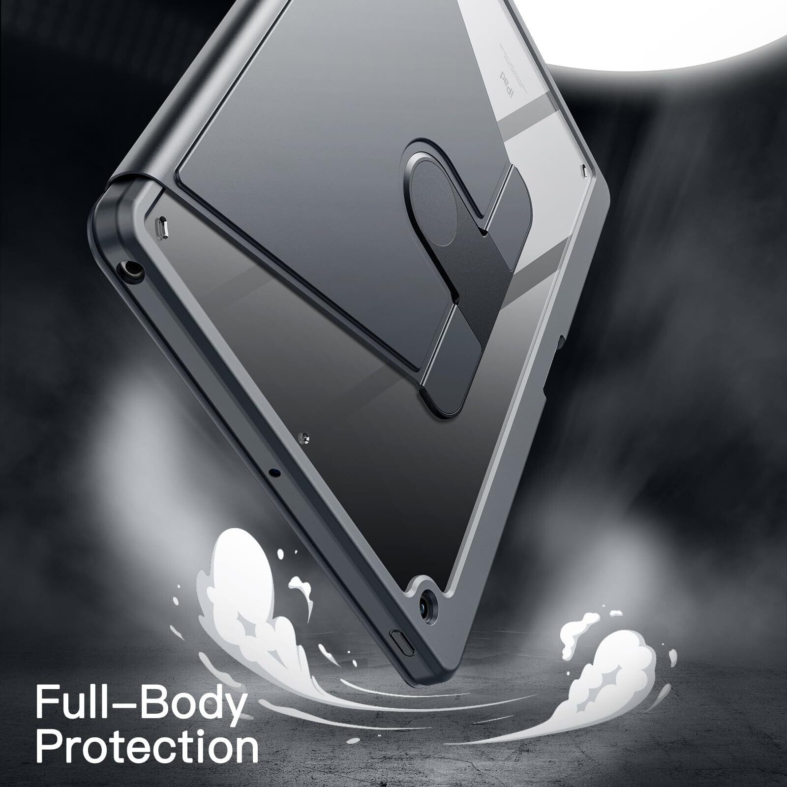 JETech 回転ケース iPad 9/8/7 (10.2インチ、2021/2020/2019モデル、第9/8/7世代用) Pencilホルダー付き 360°保護 スタンドカバー クリアバック 自動ウェイク/スリープ (スペースグレイ)