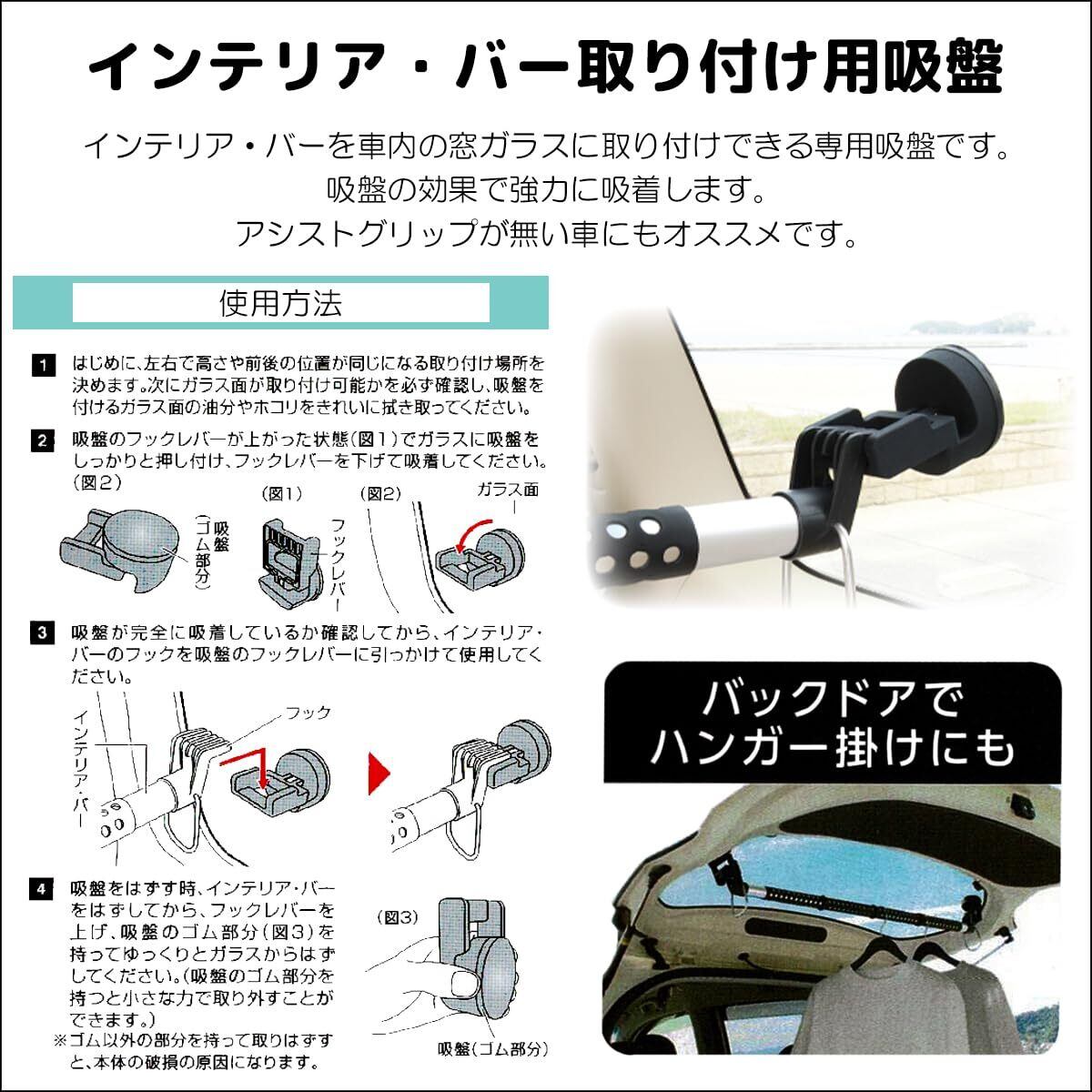 バーを車内の窓ガラスに取り付けできる専用吸盤です。アシストグリップが無い車にもオススメです。