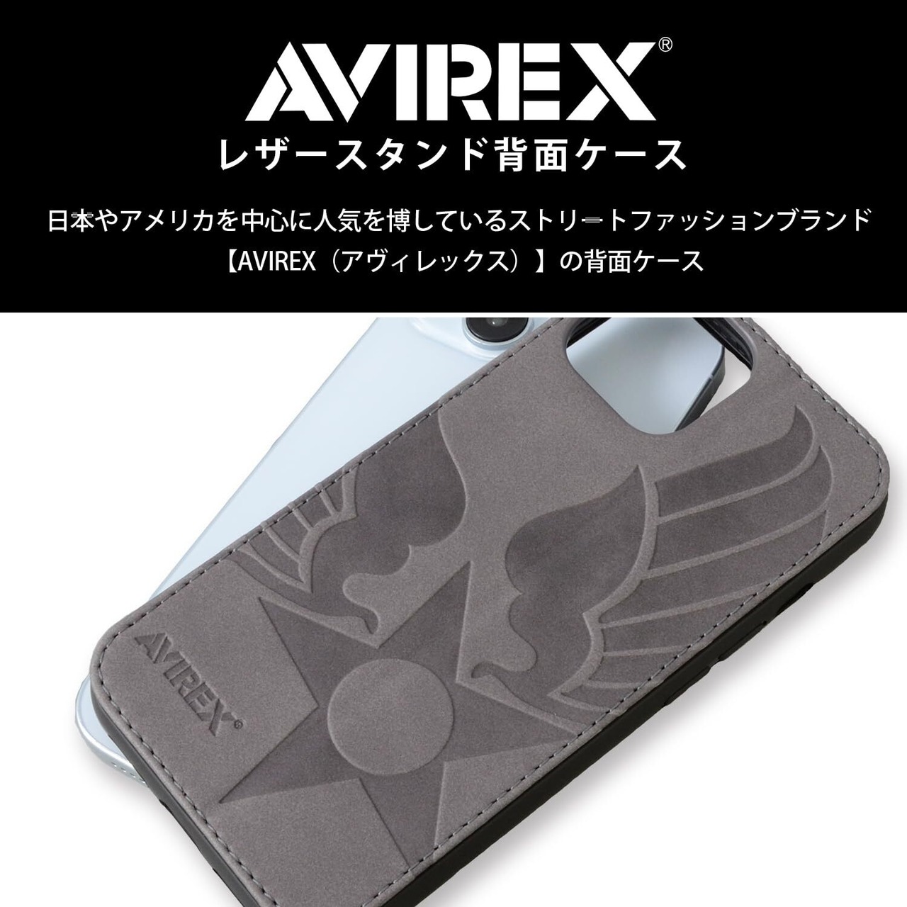 【 AVIREX 正規品 】 iPhone15 ケース 背面 カード収納付き iPhone14/13兼用 「 レザー調スタンドケース 」 アヴィレックス アイフォン15 14対応 iPhone 15用 ブランド スマホケース (グレー)