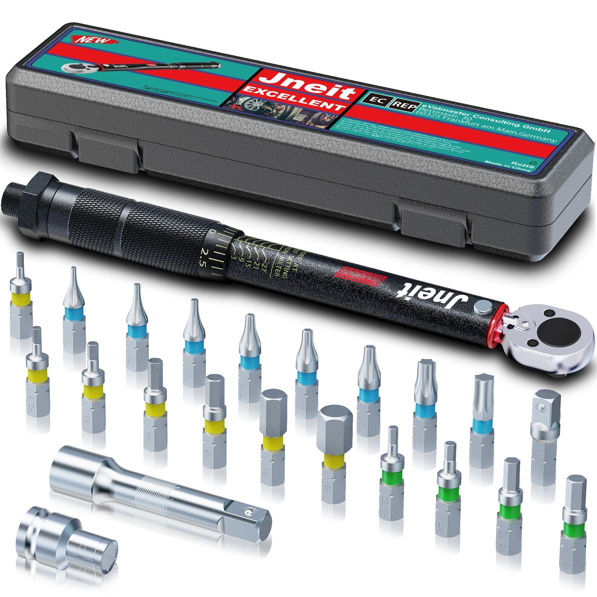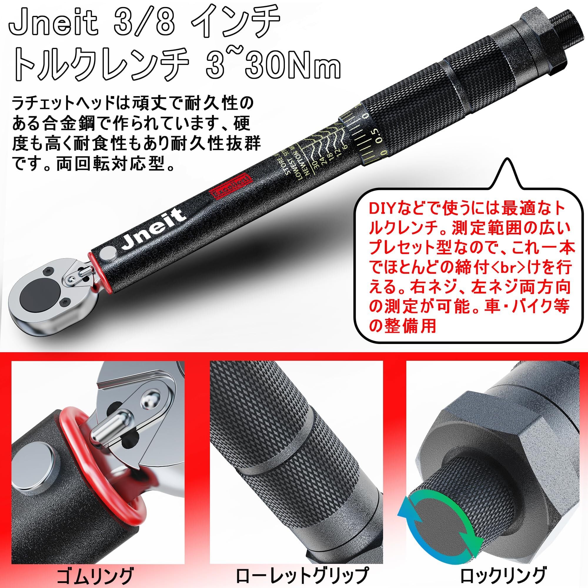 トルクレンチ 自転車用 Jneit 差込角 9.5 mm (3/8 インチ) 3~30 Nm プリセット型 とるくレンチセット 23点組 ビットレンチセット ブラック