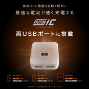 両ポートに独自のスマートICを搭載。被充電側の機器を自動認識し、最適かつ最速で充電することができます。