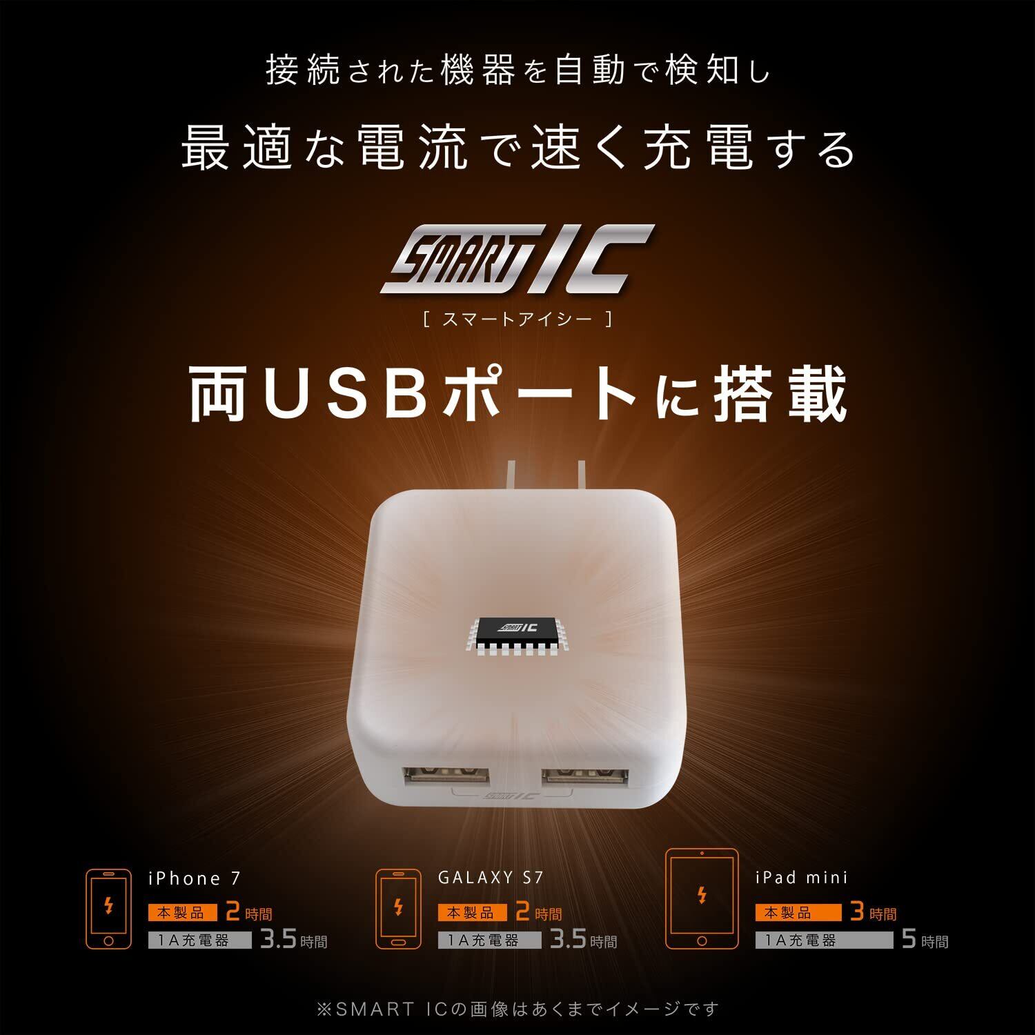 KYOHAYA usb 充電器 薄型 2ポート 2.4A 急速 ACアダプター iPhone/iPad/Android対応 折畳式プラグ Smart IC 搭載 安全 軽量 コンパクト 海外対応 JK2400IQ (ホワイト) | yankees