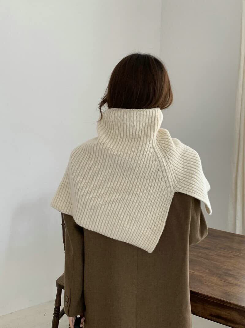 [Gincci] ハイネック スリット入り ニット 付け襟 マフラー つけえり ネックウォーマー レディース リブニット スカーフ スヌード トレンド 付け衿 ポンチョ ケープ 重ね着 防寒 保温 秋冬 おしゃれ