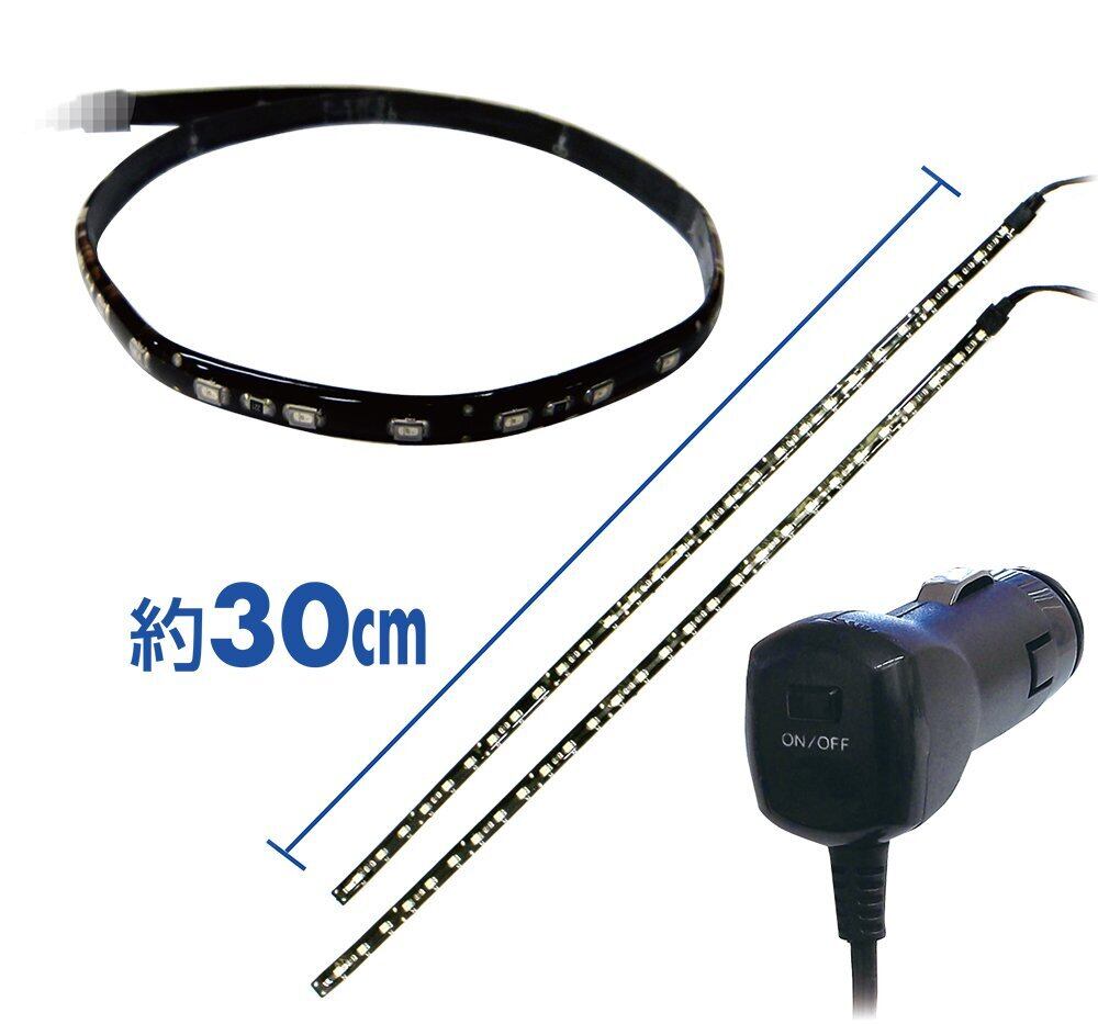 カープラグ~コネクタまでのコード長:約1mコネクタ~LEDユニットまでのコード長:約2m28灯LEDテープ2本入DC12V車専用(ON/OFF付カープラグ)0.5Aヒューズ内蔵