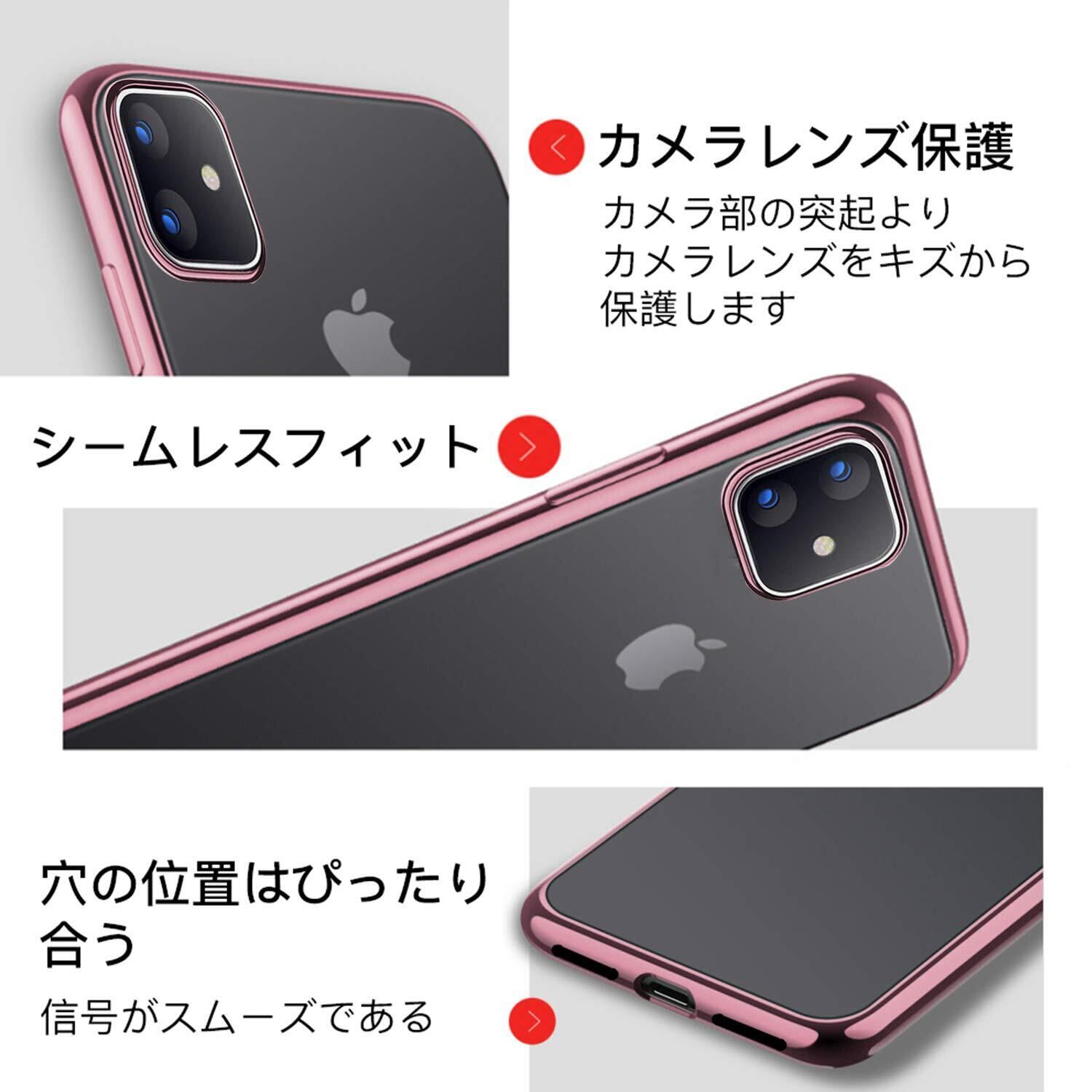 iPhone 11 ケース クリア 透明 tpu シリコン メッキ加工 スリム 薄型 6.1インチ スマホケース 耐衝撃 ストラップホール 黄変防止 一体型 人気 携帯カバー ピンク
