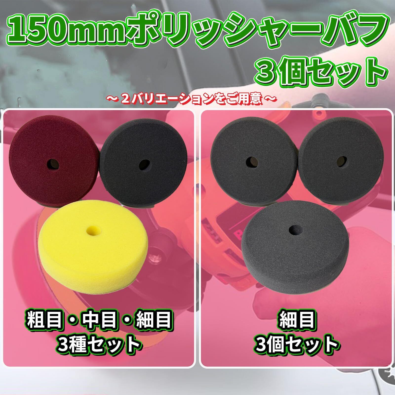 YESprime ポリッシャーバフ スポンジバフ 150mm 3個セット(細目) ワックス 研磨 艶出し 車磨き コンパウンド ポリッシュ 研磨 電動