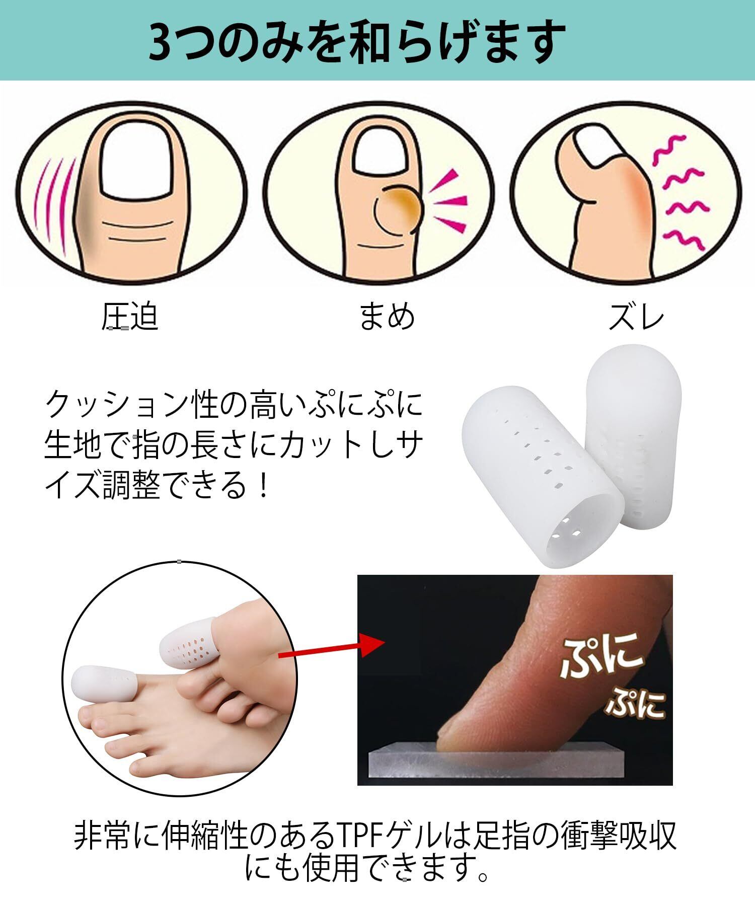 【柔らかくて快適】足の指先にかぶせて、SEBS製で指をやさしく包み、爪を保護します。