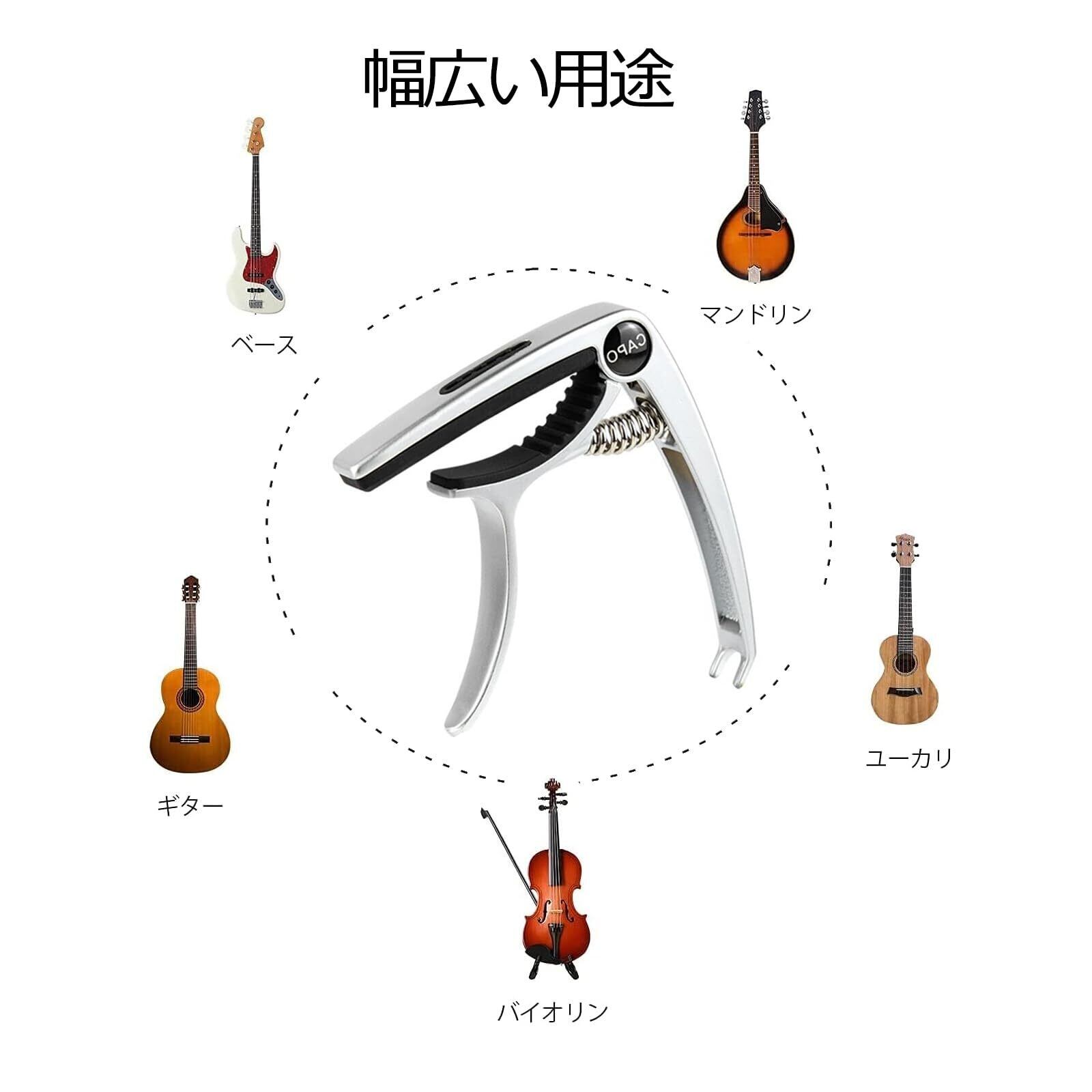 YCHIRO ギターカポタスト ワンタッチ式 ギターカポ 亜鉛合金 超軽量 クイックチェンジ 調整可能 ブリッジピン抜き機能 アコギ アコースティック エレキ ギター ウクレレ用 ピック1枚 拭きクロス 付き (シルバー) | yankees