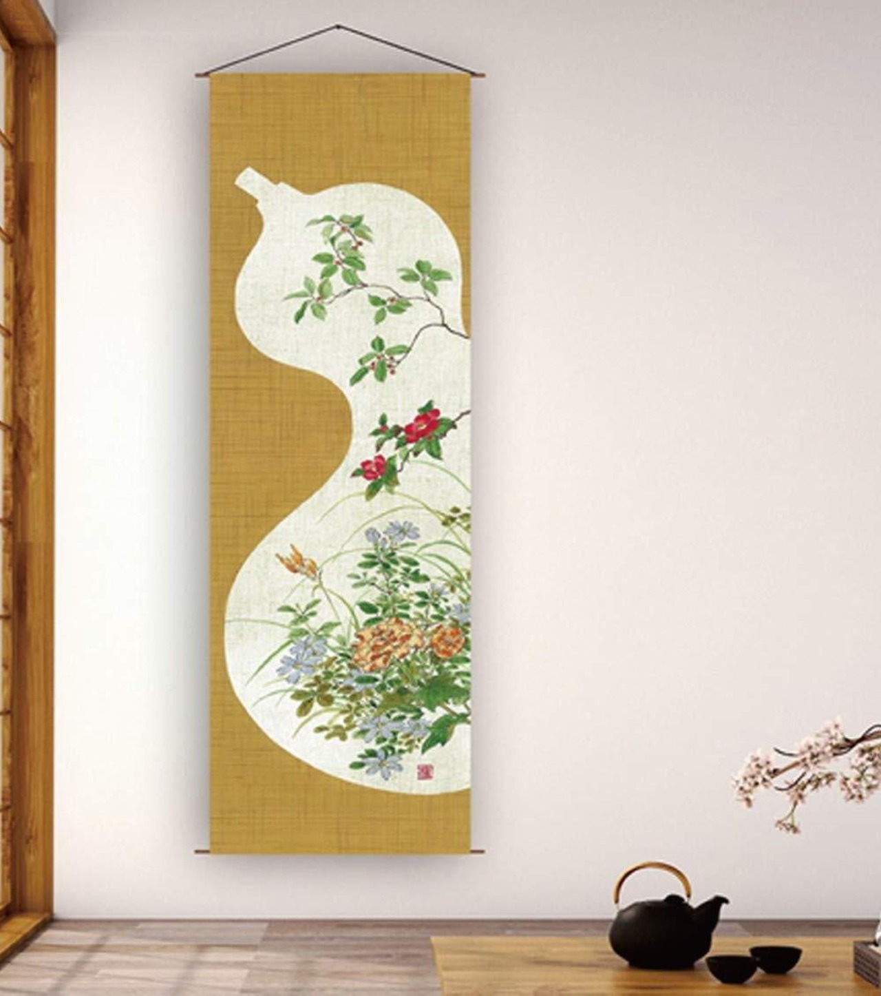 アーリエ(Arie) タペストリー のれん 壁掛け 壁飾り オシャレ インテリア コーディネート お部屋のアクセント 和風 瓢箪 ベージュ 約42cm×120cm 747121