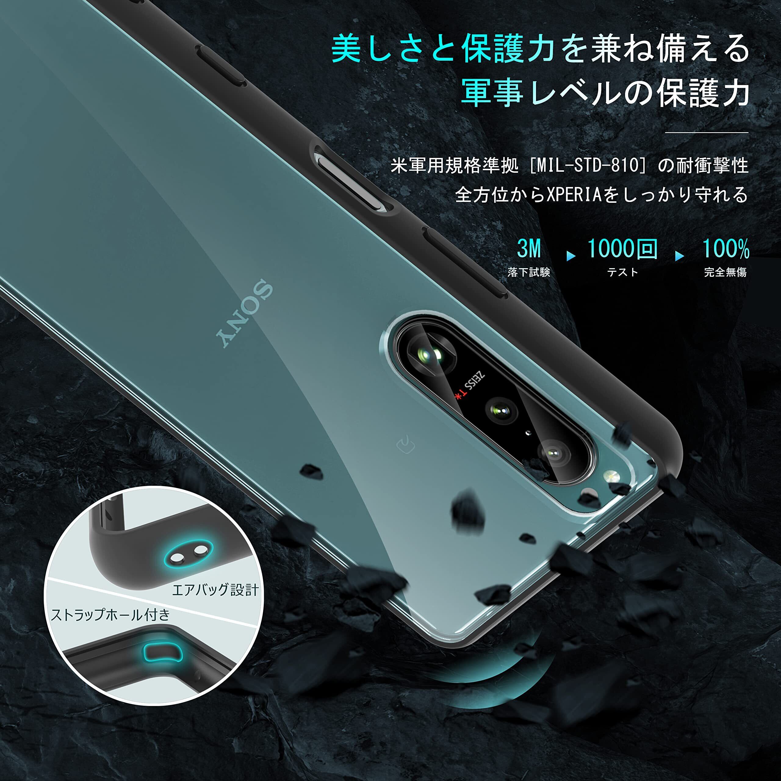 SONY Xperia 5 III 用 ケース クリア [SO-53B / SOG05] 耐衝撃 米軍MIL規格取得 SGS認証 黄ばみなし レンズ保護 滑り止め 指紋防止 ストラップホール付き エクスペリア5III 用カバー Crystal Series