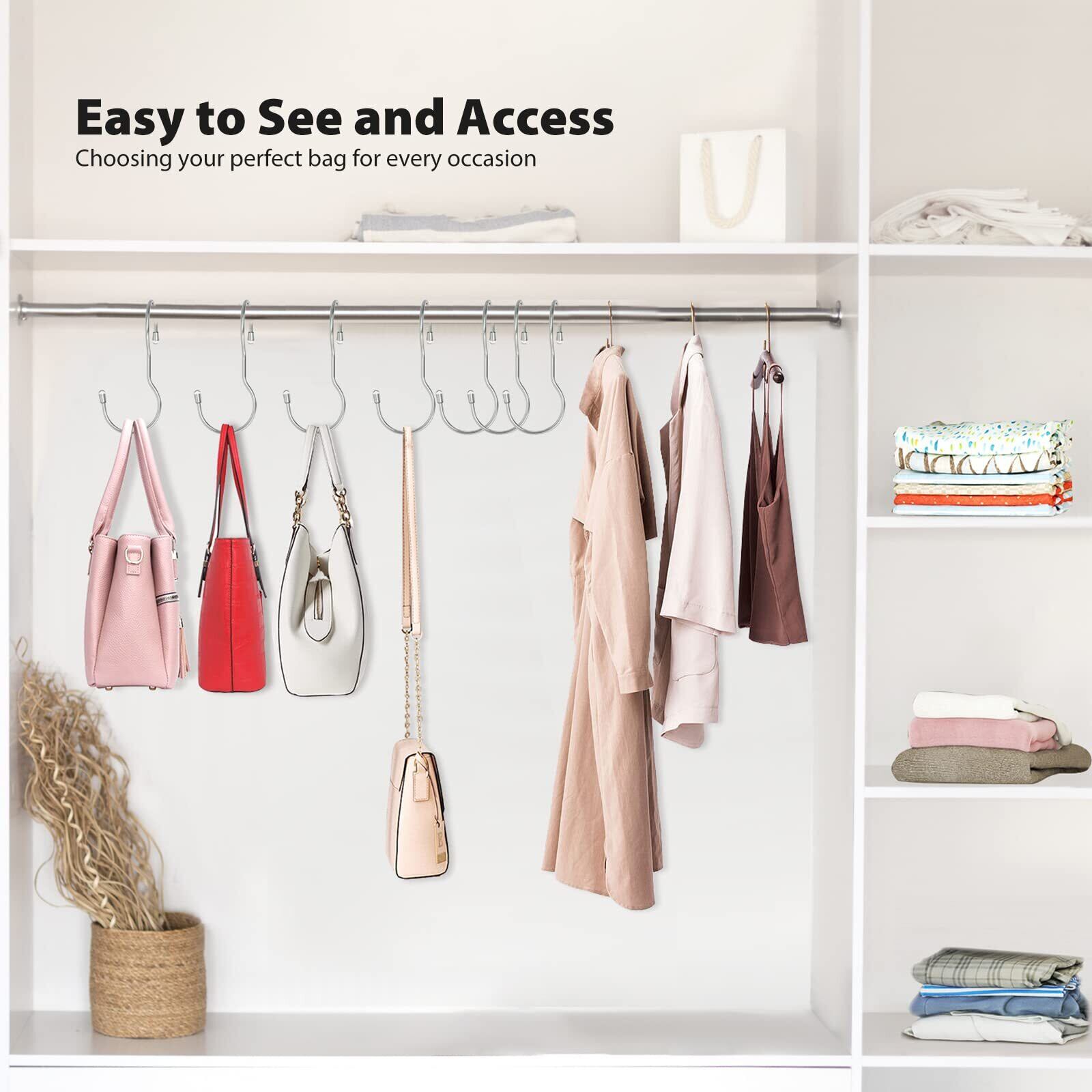Myfolrena ハンドバッグハンガー バッグフック クローゼット 12個パック ハンドバッグハンガーオーガナイザー メタルSフック Lサイズ クローゼットロッドフック ハンドバッグ 衣類 カーテン 植物 フライパン ポットを吊るす