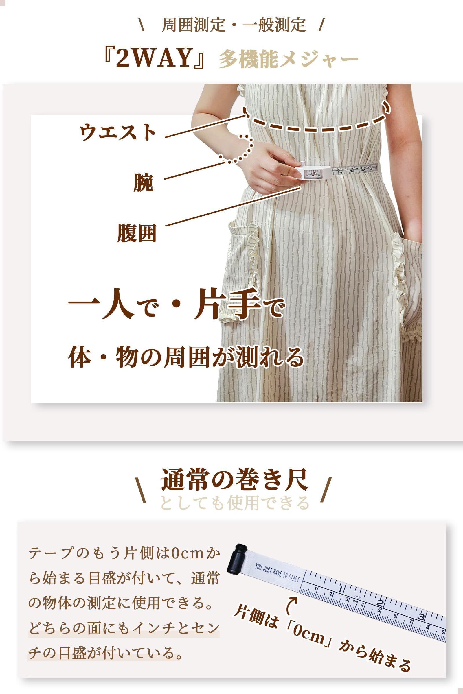 【2WAY・多機能メジャー】ウエスト・腹囲・腕・物の周囲を測定することができるだけでなく、通常の巻き尺としても使用できます