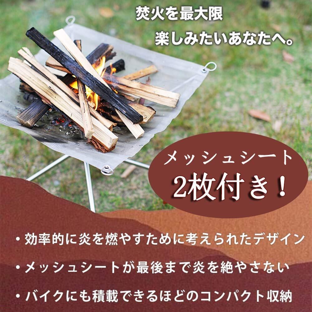 Sitengle 焚き火台 メッシュ 【2枚】付き 折りたたみ式 焚き火スタンド アウトドア ファイアスタンド キャンプ バーベキュー焚火台 コンパクト 携帯便利