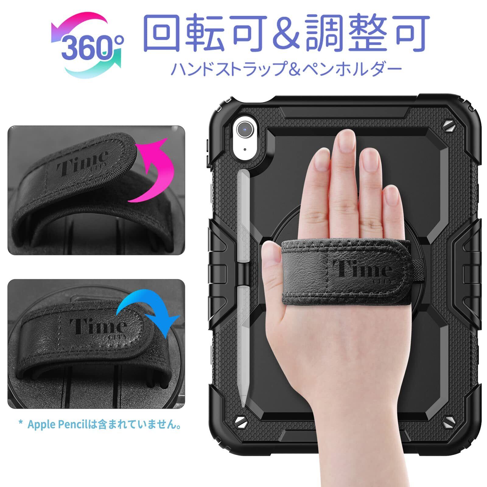Timecity iPad 11世代/ 10世代 ケース 2025新モデル (A16) 耐衝撃 保護フィルム 360°回転スタンド ペン収納 ハンド&ショルダーストラップ付き 頑丈 落下保護 傷防止 仕事 多機能 2025/2022 iPad 第11/10世代 全面保護カバー(ブラック)(適格請求書発行可能)