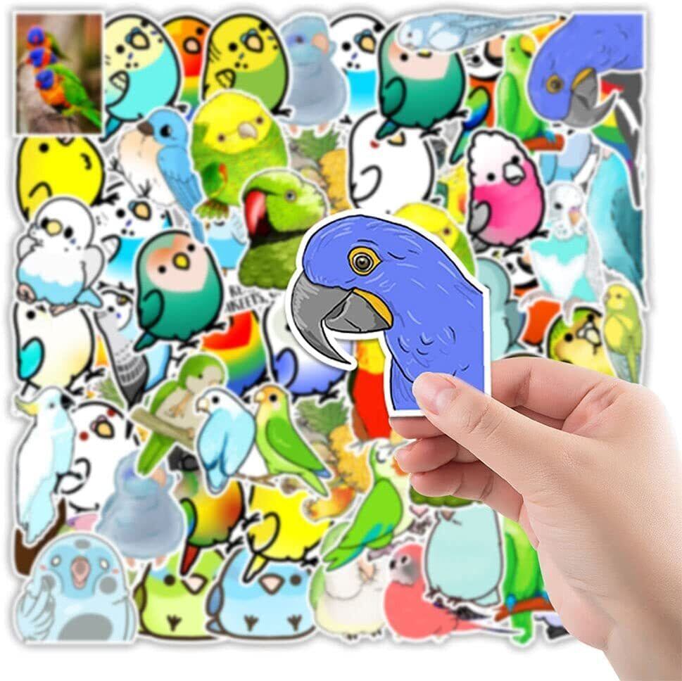 カラー鳥シール50枚、鳥防水ビニールアップリケ、ウォーターボトル、荷物、教育インセンティブ、子供、ティーン、大人へのギフト用ビニール防水ステッカー (オウム羽)