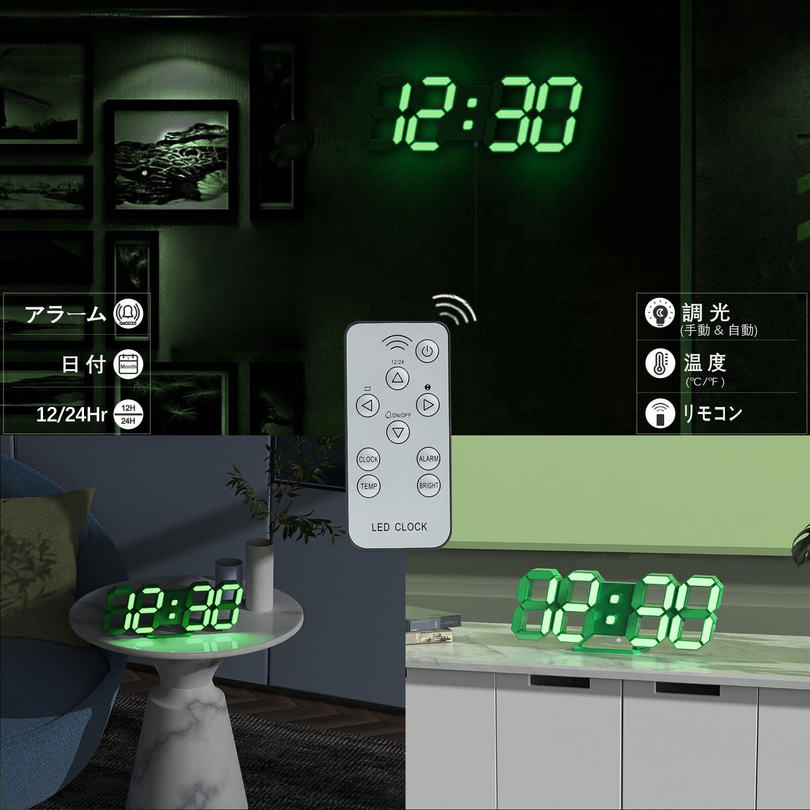 KOSUMOSU デジタルLED時計 壁掛け時計 9.7インチグリーンデジタル時計 明るさ調整可能な置き時計 リモコン付き 時間表示(12/24時間)/日付/温度(℃/℉) アラーム機能ACD-210GR…