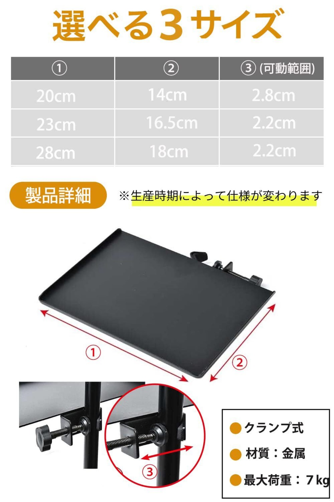 【 商品仕様 】 ●「カラー」ブラック ●「サイズ」画像にてご確認下さい ●「材質」金属製 ●「仕様」クランプ式 ●「最大荷重」7kg