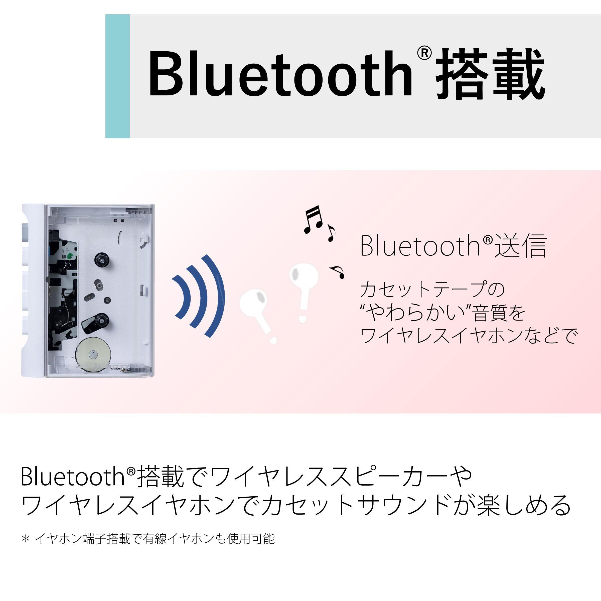 Bluetooth送信機能搭載でワイヤレスイヤホンなどでカセットサウンドを聴くことができる