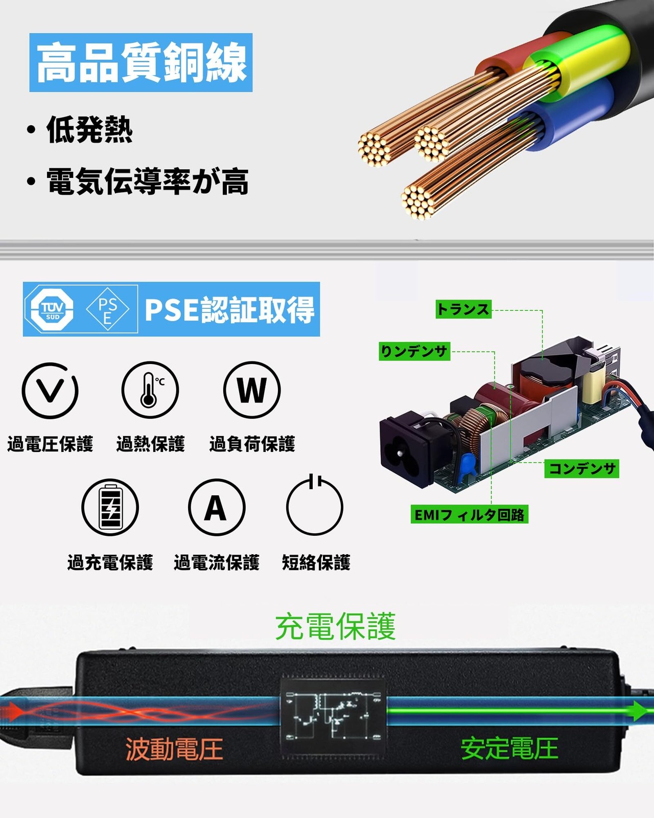 多重保護システム:多重保護を提供する,過充電保護、過放電保護、過熱防止、漏電保護、長期間お使いいただけます。