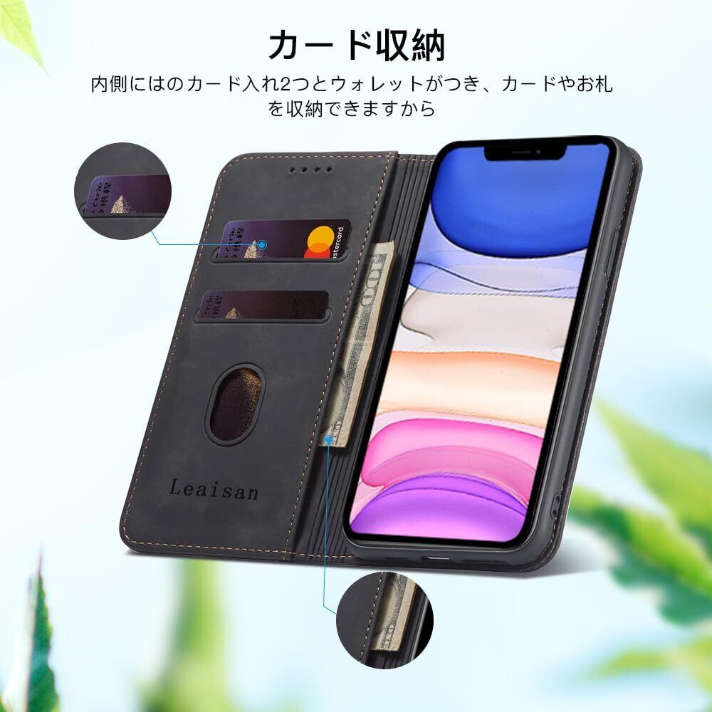 Leaisan iPhone 11ケース 手帳型 レザー アイフォン 11用 手帳型 スマホケース 内蔵マグネット 携帯カバー 【カード収納ポケット】 【スタンド機能】 全面保護 耐衝撃 薄型 手触りが良い 6.1インチ対応 - ブラック